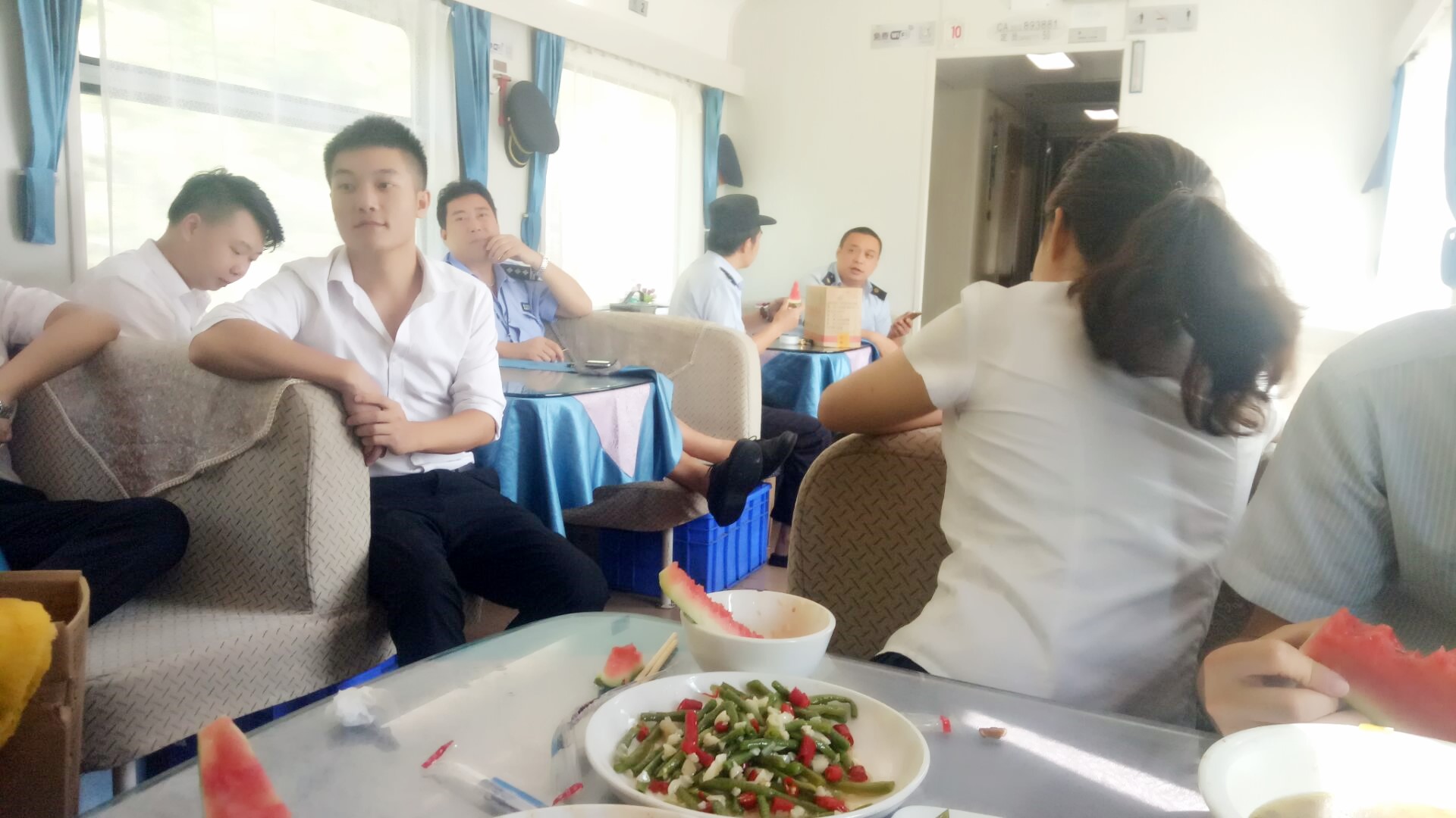 那些爷爷奶奶尽管年过半百,可是他们有一个年轻的心,他们在车厢里欢声洽谈,他们在车厢里载歌载舞。我们很幸运,那是出乘工作最轻松的一次,地面干净没有垃圾,车厢内没有乱扔情况,他们为我们展示了文明人应有的素质。