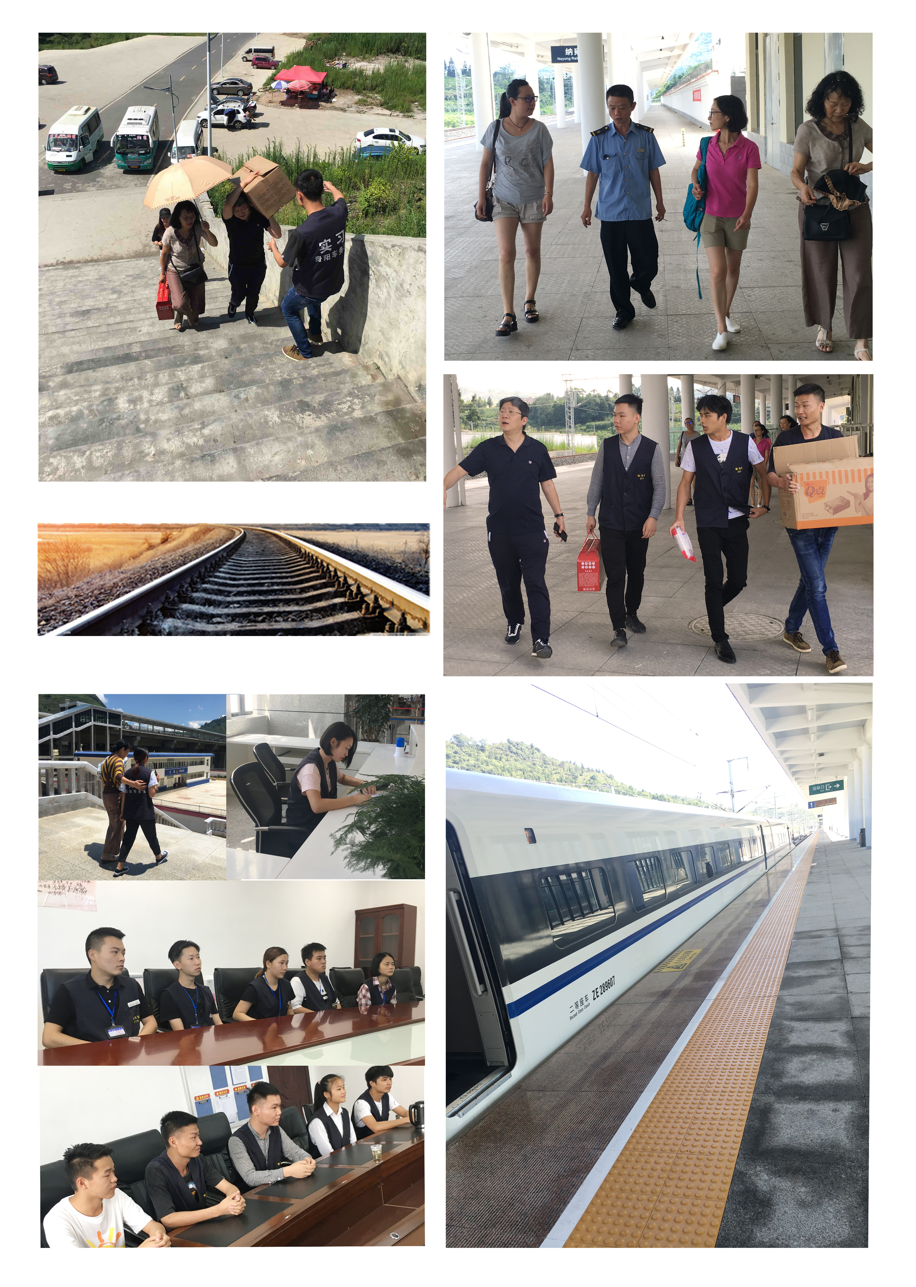 2017年7月23日—27日,学院副院长刘畅代表学院领导亲切慰问辛苦奋战在贵阳车务段各站点实习的同学们,学生处处长刘妮娅、轨道联合党支部书记丁晓莹、招就处主任陈香、暑期社会实践工作小组钟馨怡、谭舒月老师随行,参加了本次慰问活动。
