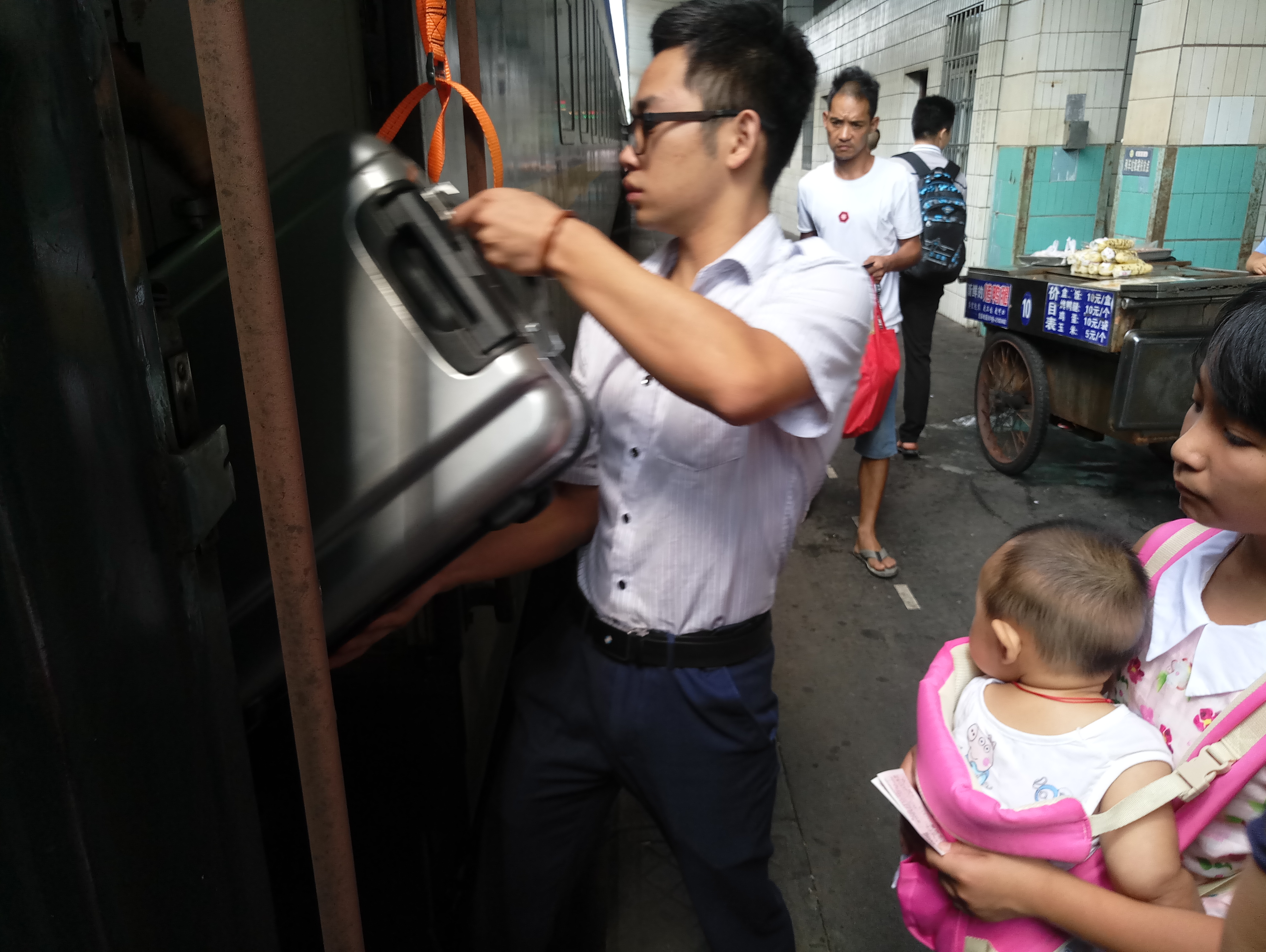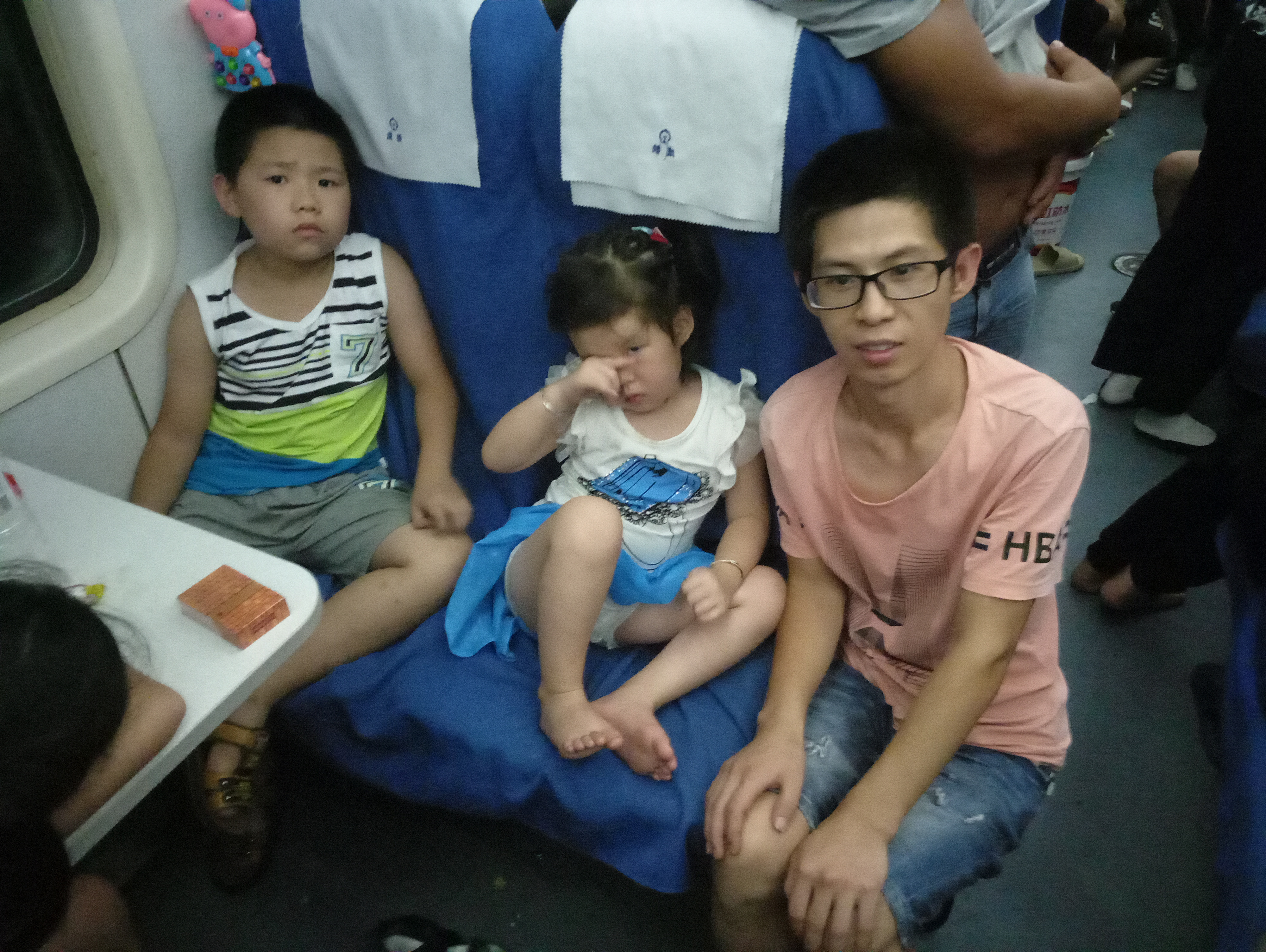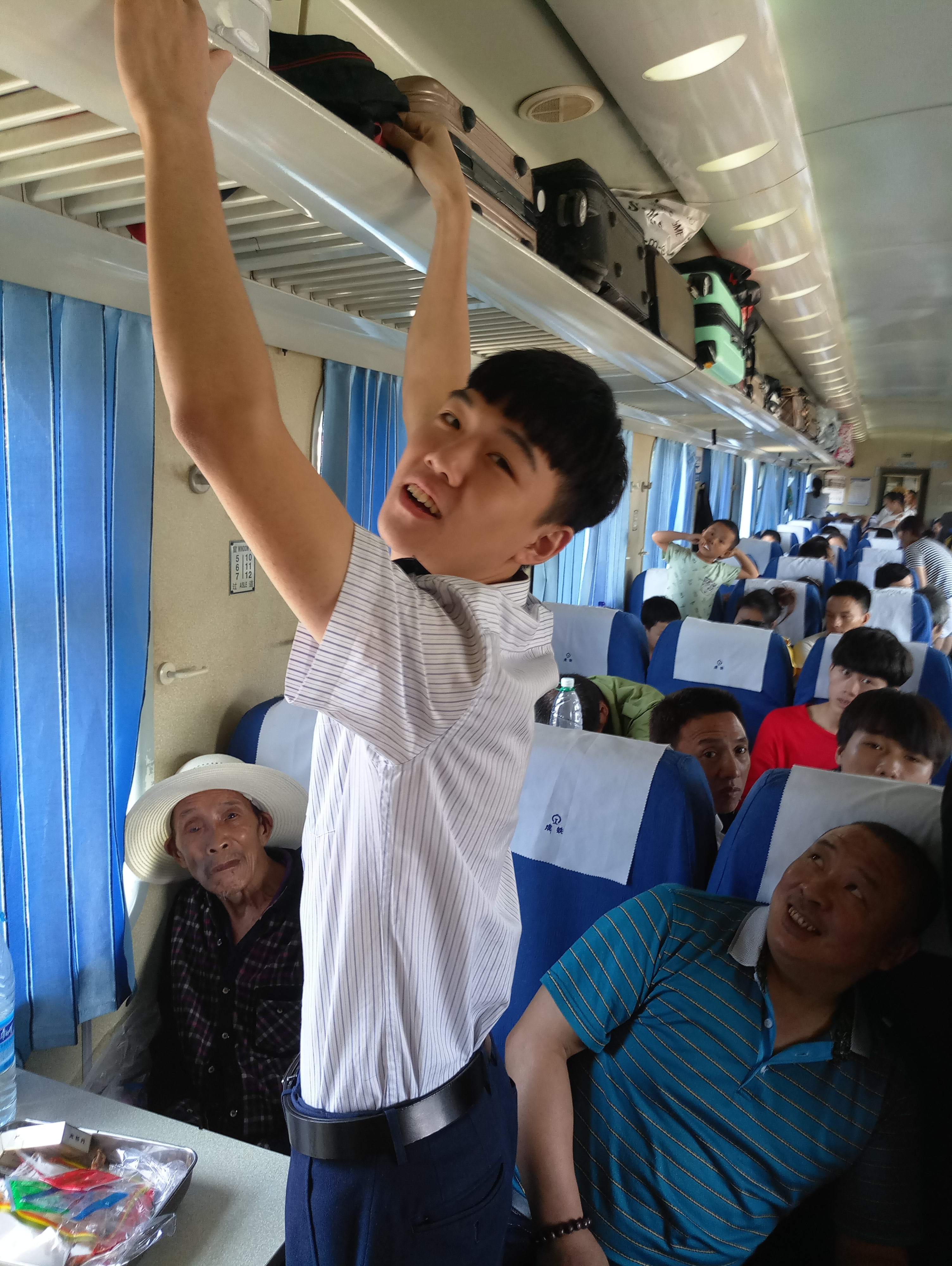 每年的七八月份,列车也会超员,在车上没有座位的旅客,总想找个偏角的地方坐下,靠一会儿,带小孩的旅客就更为辛苦。看着爸爸坐在过道,看着长辈把小孩护在怀里,看着妈妈把小孩背在胸前,这样的一幕幕,看在眼里,有时候真的会触及人的心扉。