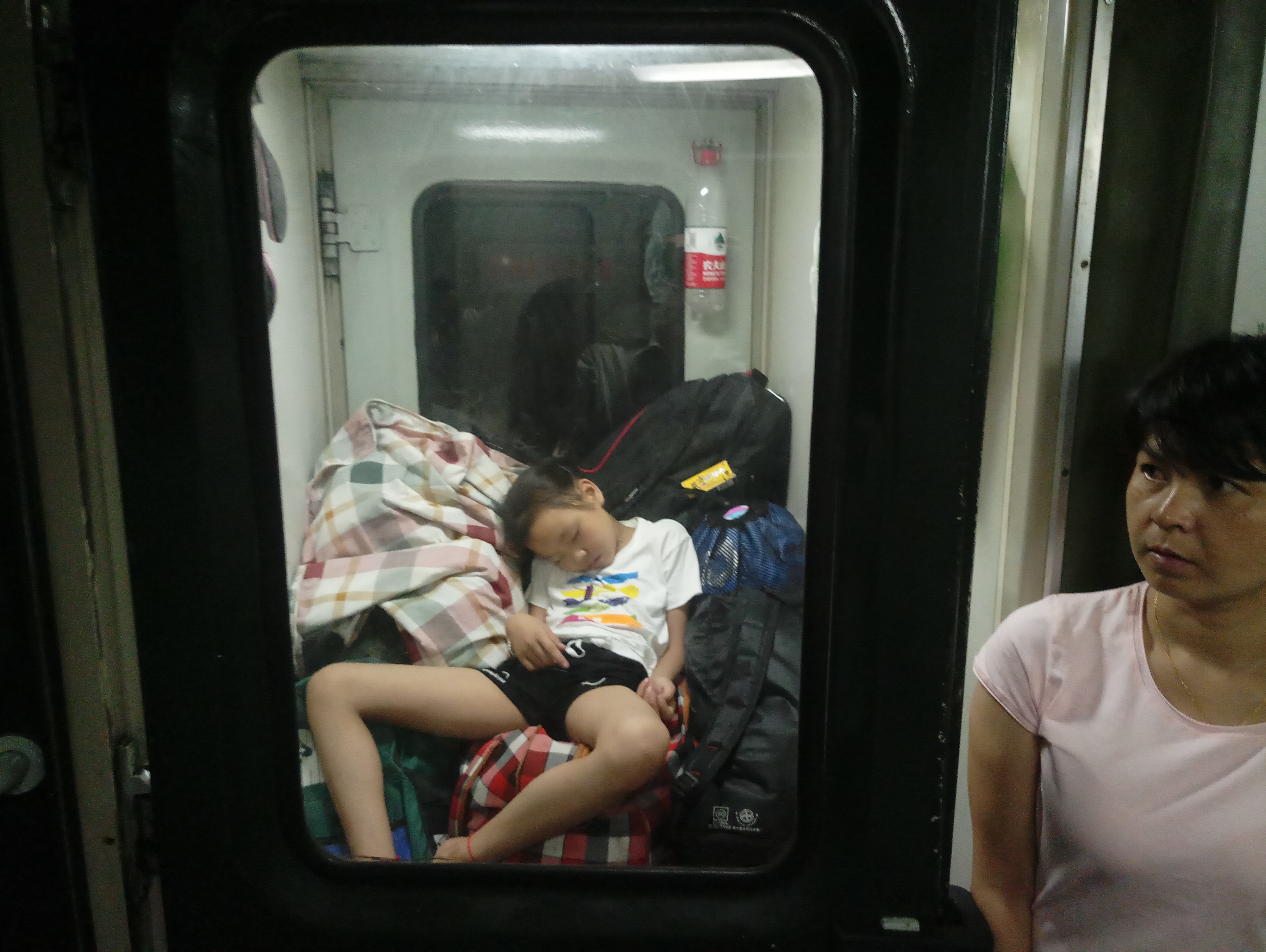 车门自检互检期间,我发现车厢连接处有一个小孩睡在行李上面,看着挺心酸的,因为孩子的家长没有买到座位只买了站票,回想起去年的春运,这样温暖的场景很多,今年暑运,这样的场景再次让我感受到了浓浓的爱,母亲为了孩子能够休息,站在旁边坚守着,他们的爱那么伟大。