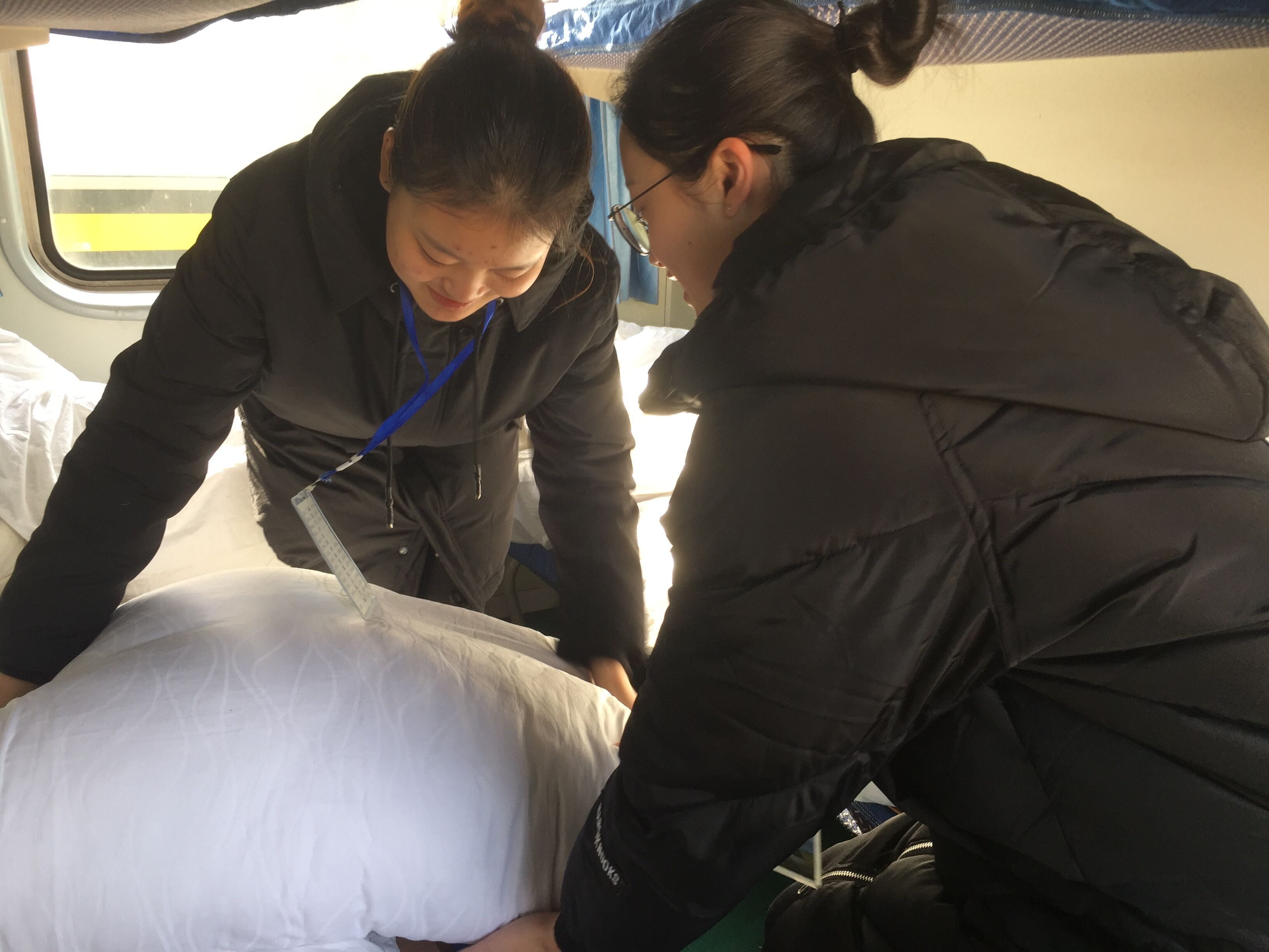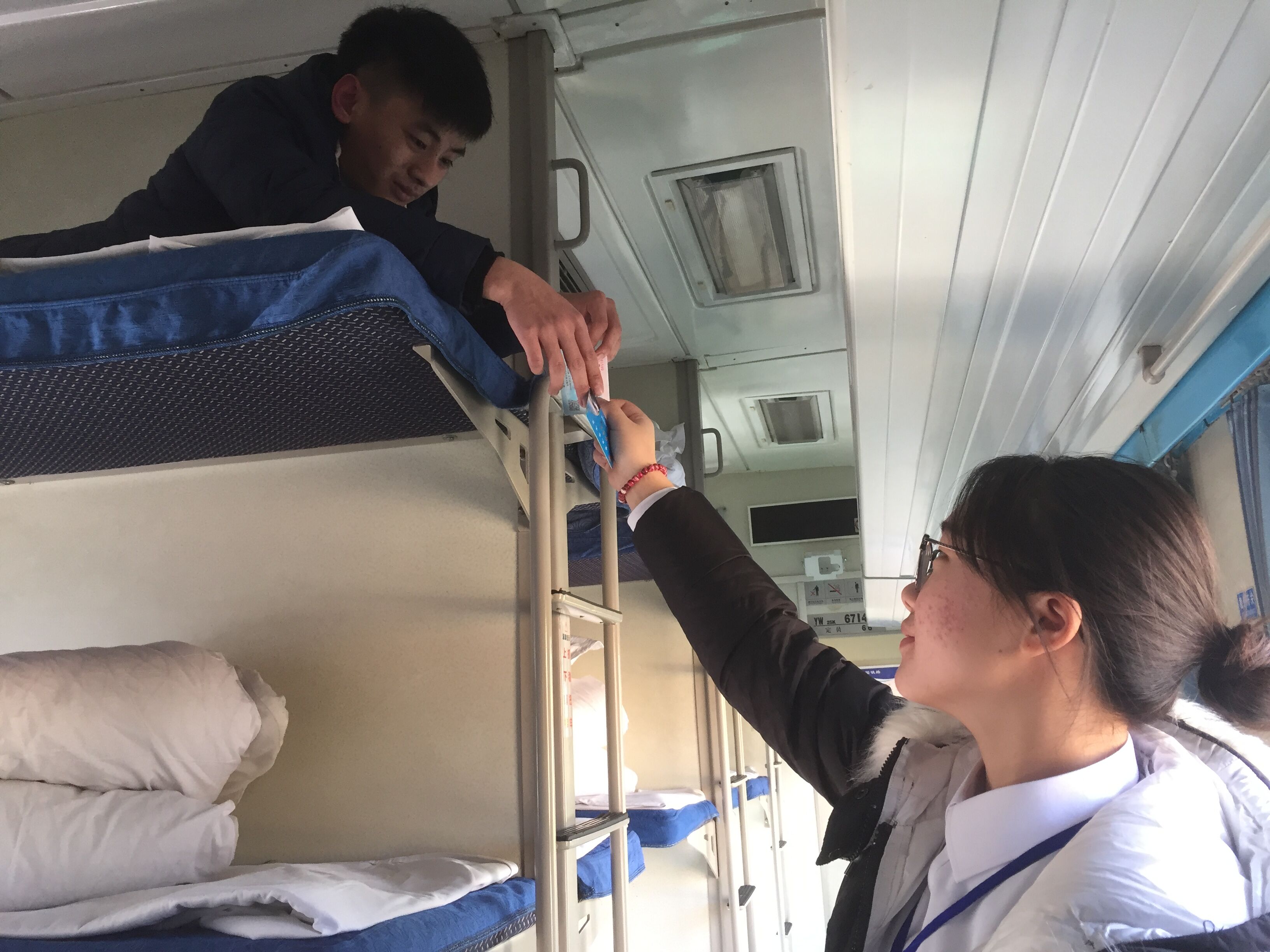 看着这样的一幕幕,我开始思考。不得不说当志愿者确实很累,不仅要做好车门管理、车厢卫生、消防安全等,还要帮助老弱病残孕旅客及重点旅客,工作十几个小时,有些同学累得在餐桌吃饭时都睡着了,但当我们看到这一切都是值得的。我们干着最平凡的志愿工作,收获的都是不平凡的经历,以最平凡的志愿服务,温暖着回家旅客的心。