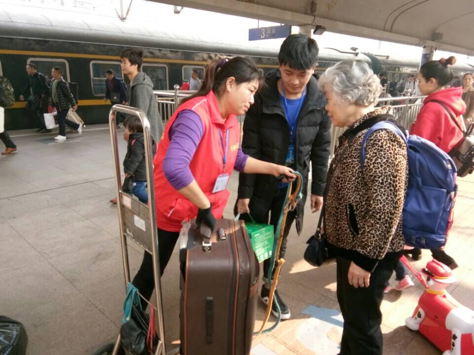 这些便是我与师傅的第一次对话,在对话过程中师傅身穿一套单薄而又整洁的工作服,笔直的站立在车厢口,虽然当时的温度极低,但是却被这样一群铁路工作者们的热情所点燃。看着Ta们认真负责工作的样子,我仿佛看到了自己未来的缩影。加油吧各位春运志愿者们,让我们携手同行,为我们的学院争光,为我们的青春添彩。