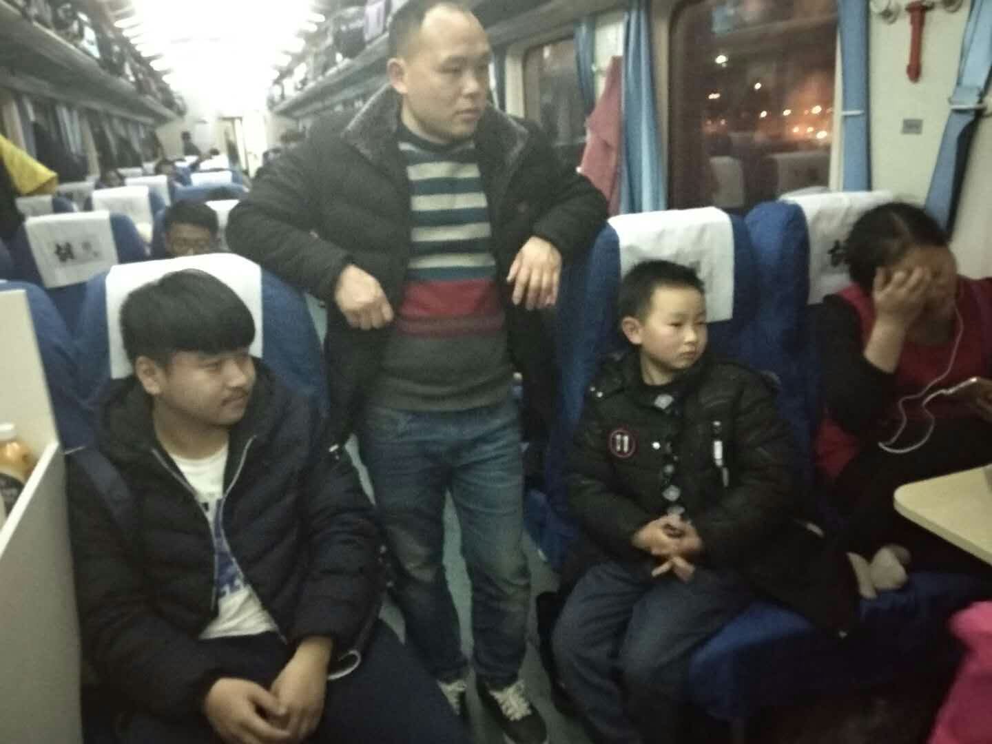 广州一路回来满员,人多行李多,过道都站着人。衡阳站上来一对父子,没有座位。小男孩一直站在过道一动不动,这时有个旅客离开后有个空位,小男孩的爸爸让他去坐着,小男孩就是不动拉着爸爸的衣角盯着空位。