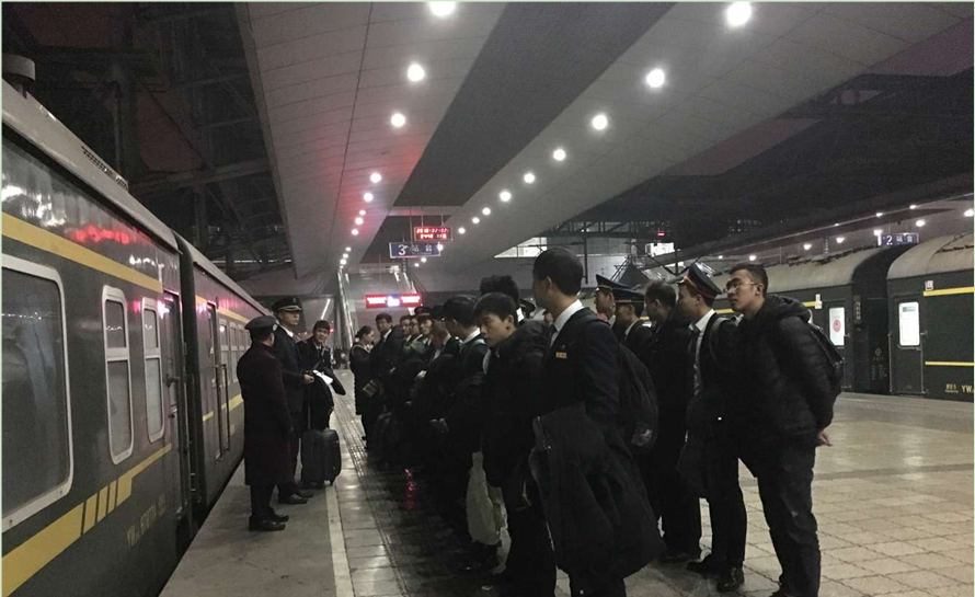 凌晨一点的深圳东站总是寒风凛冽,但早已有站列整齐的列车组员,在一天中最早时刻准备以最好的精神面貌迎接工作。