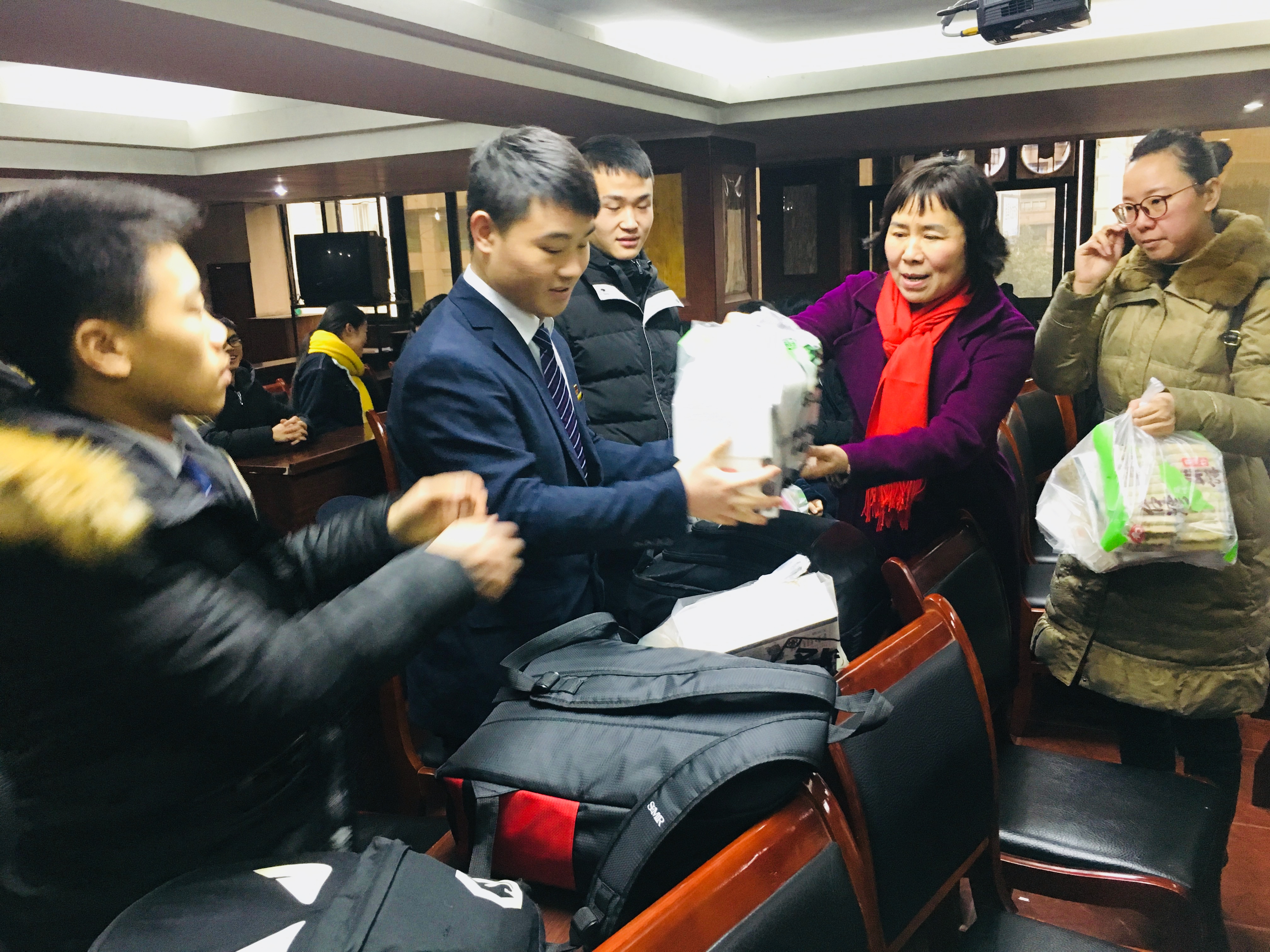 下午2点,彭书记一行5人先后抵达重庆客运段综合楼及菜园坝机关一楼车队培训室,看望即将出乘的孩子们,为他们送上了慰问品和新春祝福。慰问中,彭妈妈与春运志愿者进行了亲切的交谈,细心倾听孩子们在志愿者服务工作中遇到的困难,畅谈自我收获与心得感受,对我院志愿者昂扬的精神状态、饱满的工作热情给予了充分的肯定,并鼓励志愿者积极投身春运志愿服务,践行我院“专注、坚定、担当、感恩”的春运精神,通过此项活动传递爱心、弘扬青春正能量。