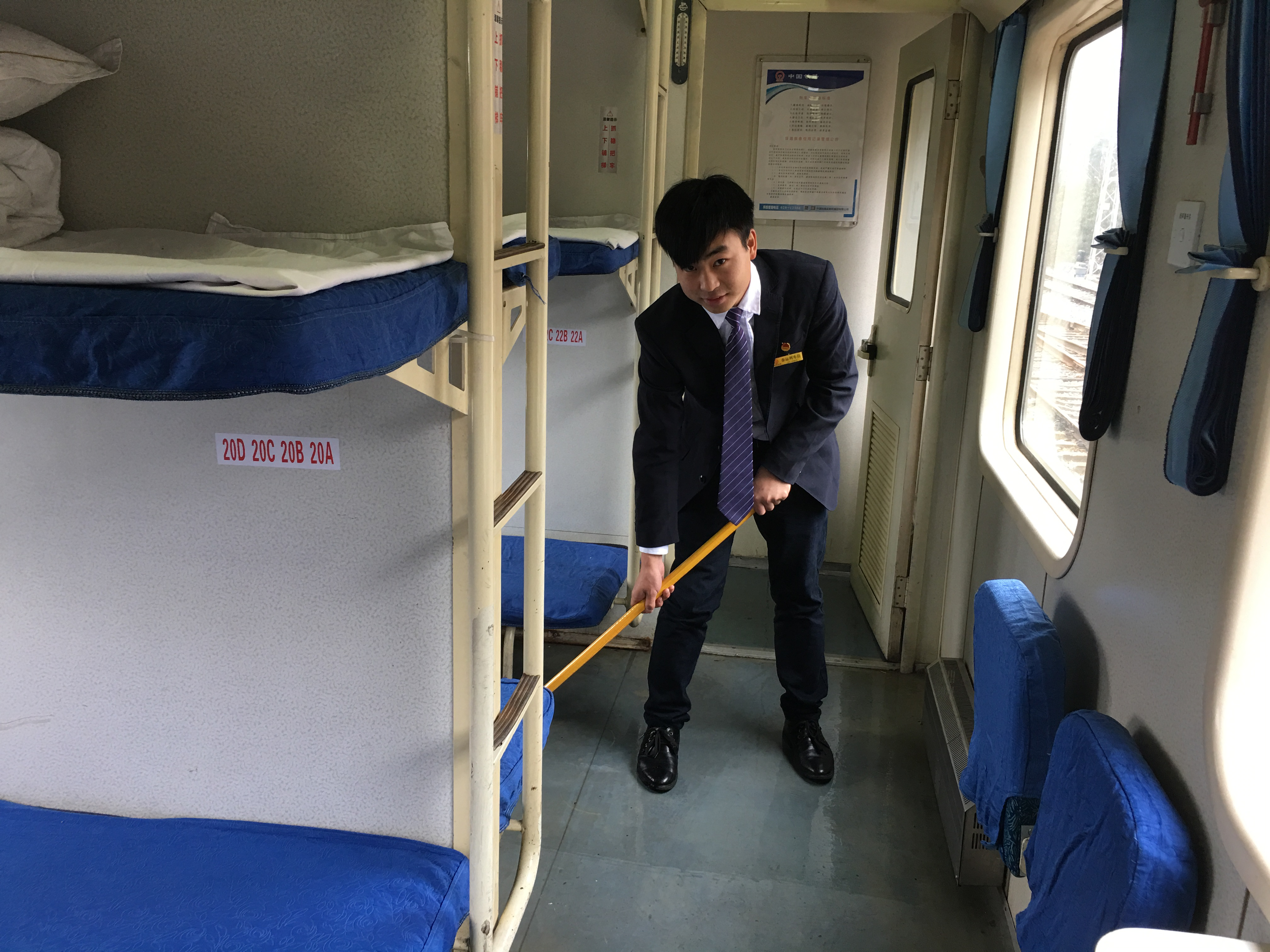 在出乘执行任务中,从出发前的卫生到结束时收尾卫生的打扫、从乘客上车到下车的服务、从车门的开到关、从站姿到车票的检查等等,每一步骤都严格执行国家铁路标准,把好每一道质量关卡。