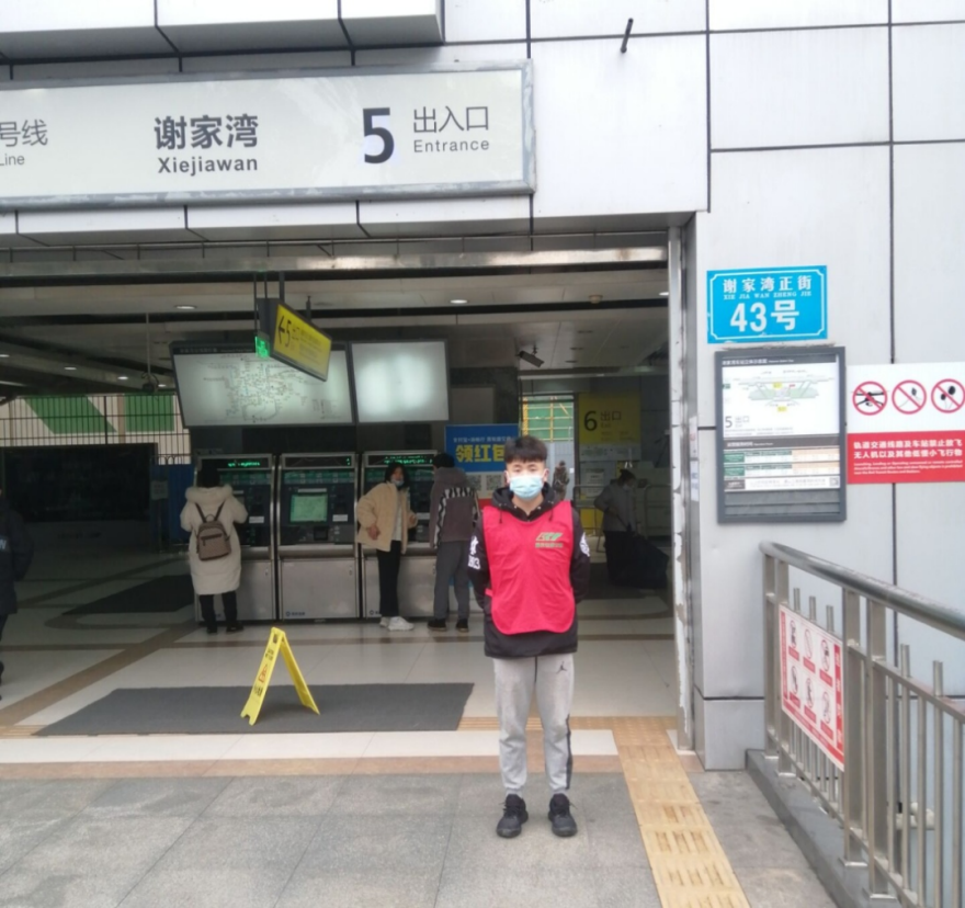 由于我家距离谢家湾站很近所以我报名的是该站。到达谢家湾站,我们先找到了该站的值班站长。她很认真和蔼地告诉我们一些注意事项并分发给我和另外一名小伙伴一人一件轨道红马甲。志愿者服务正式开始了。我被分配到出站闸机的旁边来帮助因为防出站人过多而导致拥挤,以及为一些乘客解决他们下站后该往哪里去的方向问题。