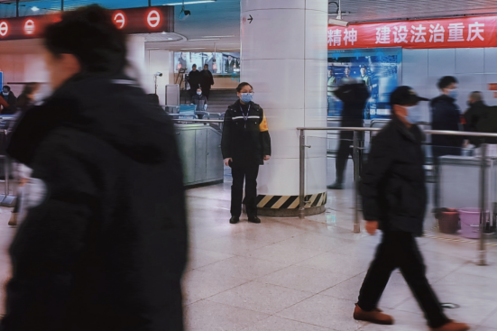 站在跟岗的站务员姐姐的身边,看着人潮,看着一秒一秒跳动的时间,四分钟——这是客流量的聚散。四处看看,站务员姐姐们带着黄色的防疫袖标,穿梭在这无边的人海里。却正因为那黄色的袖标,站在人海外的我却总能捕捉到她们忙碌的身影——明明那么娇小,却有着名为“安全”和“防疫”的无限能量。