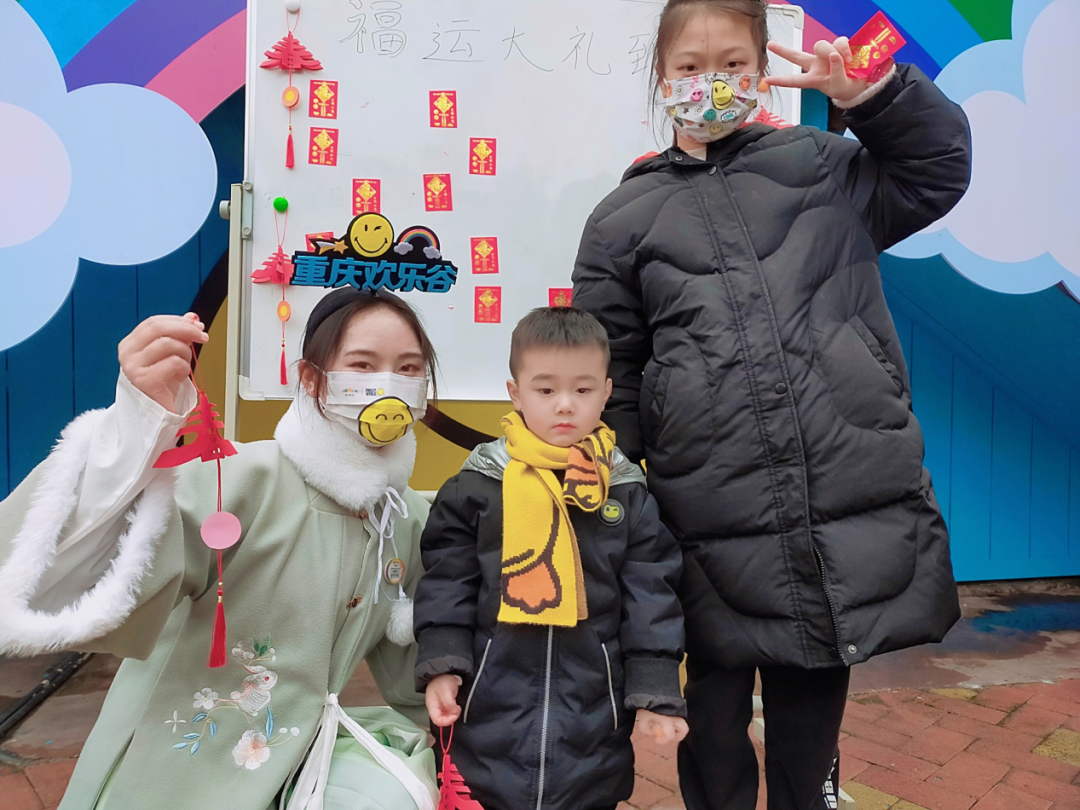 以祝贺为前提,以开心为目的,我们事先准备好50个红包,准备好的红包内写下了对游客的新春祝福,内附游戏活动卡片,贴到展板上,游客抽到便一起玩游戏,现场一片活跃,还排起了小长队等候抽奖呢!游戏内容丰富多彩,有热身运动、小跳绳、送祝福、送小熊气球春字剪纸、DIY春节小挂饰,现场游客朋友们还拍起了小长队,热闹互动的氛围深受游客朋友们喜爱。