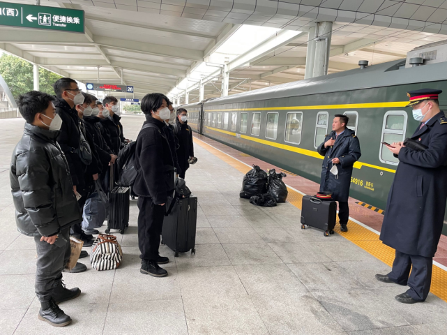 “旅客上下完毕,警示带、安全渡板已收,车门已呈35度待关闭状态。”2月6日早9点31分,K73次列车从重庆北站出发开往上海,列车长雷磊的对讲机中依次传来各车厢列车员的汇报声。这趟春运期间加开的临时客车与往常不同,列车上有14名列车员都是城铁预录的大学生,大部分同学也是第一次参加春运的客运工作。