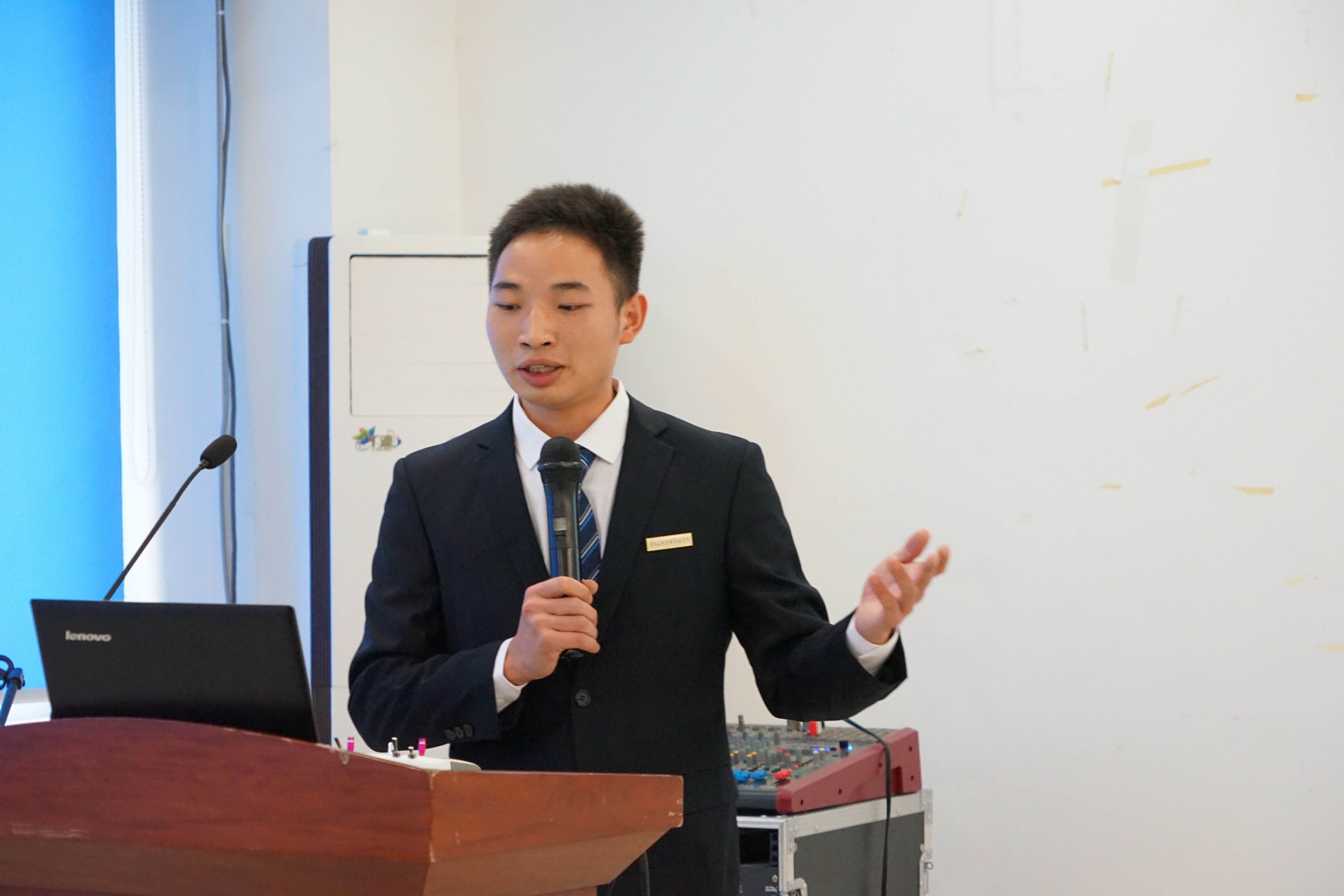 答辩会上,主持人先介绍了答辩选手的答辩规则与要求,6名答辩同学依次上台分别从学习、思想、专业技能、社会实践等多个方面进行个人情况陈述,各显身手,各具特色。