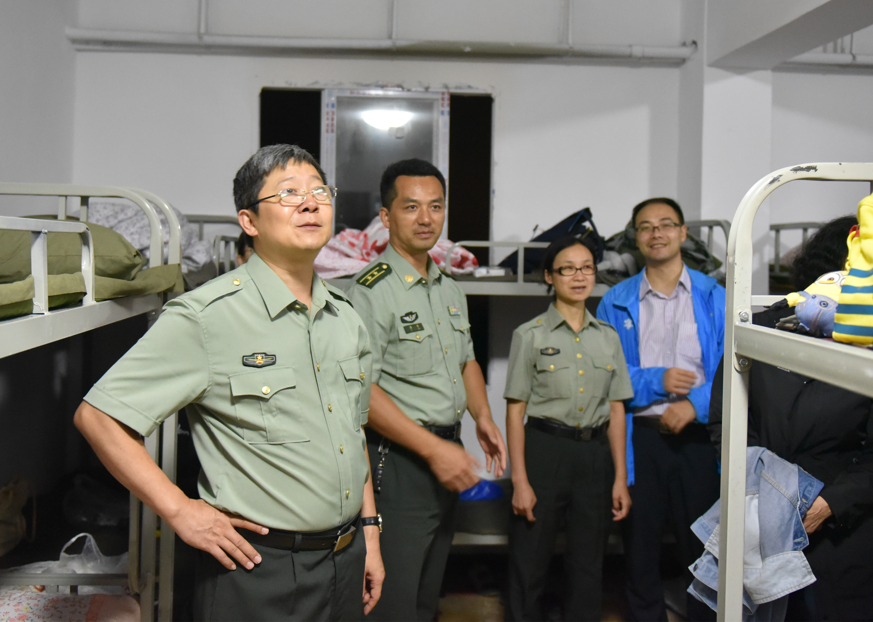 3日晚,彭超书记、李海峰常务副院长前往九龙坡基地,看望军训新生寝室安顿等情况,明确表示要关注学生的作息时间、寝室入住、教官人数配比、军训学生饮食等问题。当日下午,军训办公室成员从古剑山赶往消防基地,关注学生思想动态稳定情况,让消防基地的主要责任人担起责任,用实践经验、往期军训优秀案例正面引导学生,提高学生对于军训的思想认识。当日晚上,刘院长同军训团李军团长,到达古剑山基地,督促基地为学生准备60余台饮水机、大量清洁工具,给同学们提供热水保障。走访寝室看望学生,询问学生适应情况,鼓舞新生要正确看待军训,顽强拼搏,克服苦难,不断锻炼自我和塑造自我。