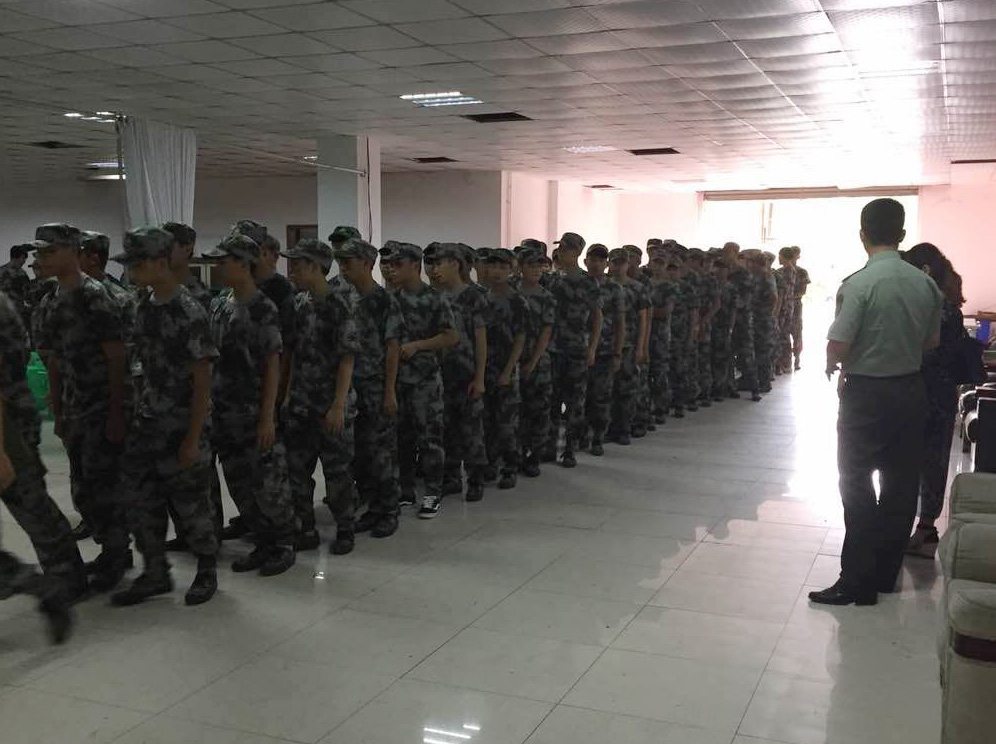 在教官的带领下,分批次前往餐厅就餐