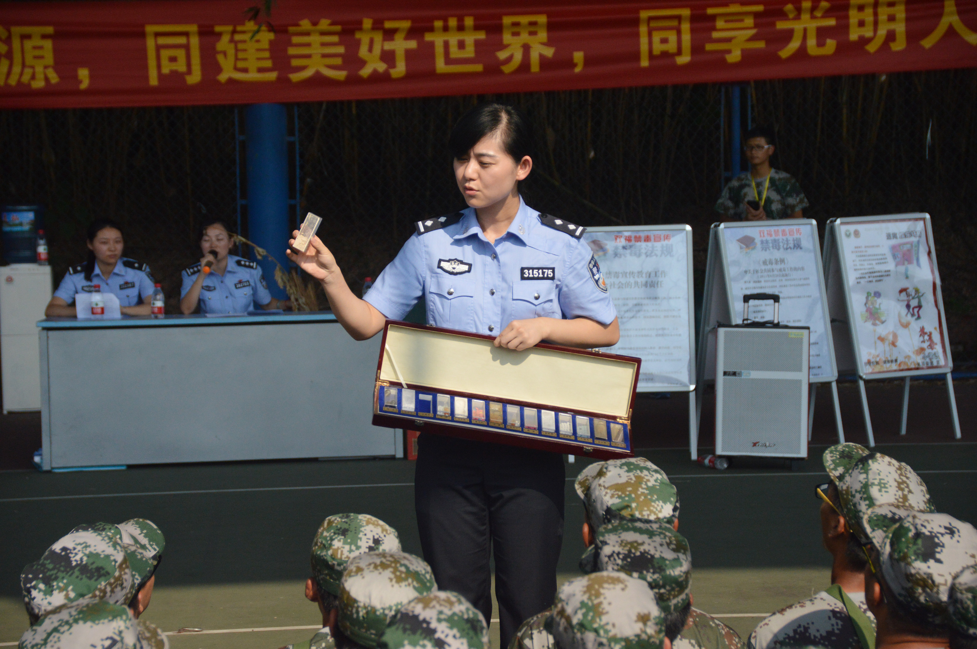刘警官给新生讲解了毒品的危害性和种类,并通过一些案例,让同学们知道毒品会造成家庭的破碎,引起同学们的重视。