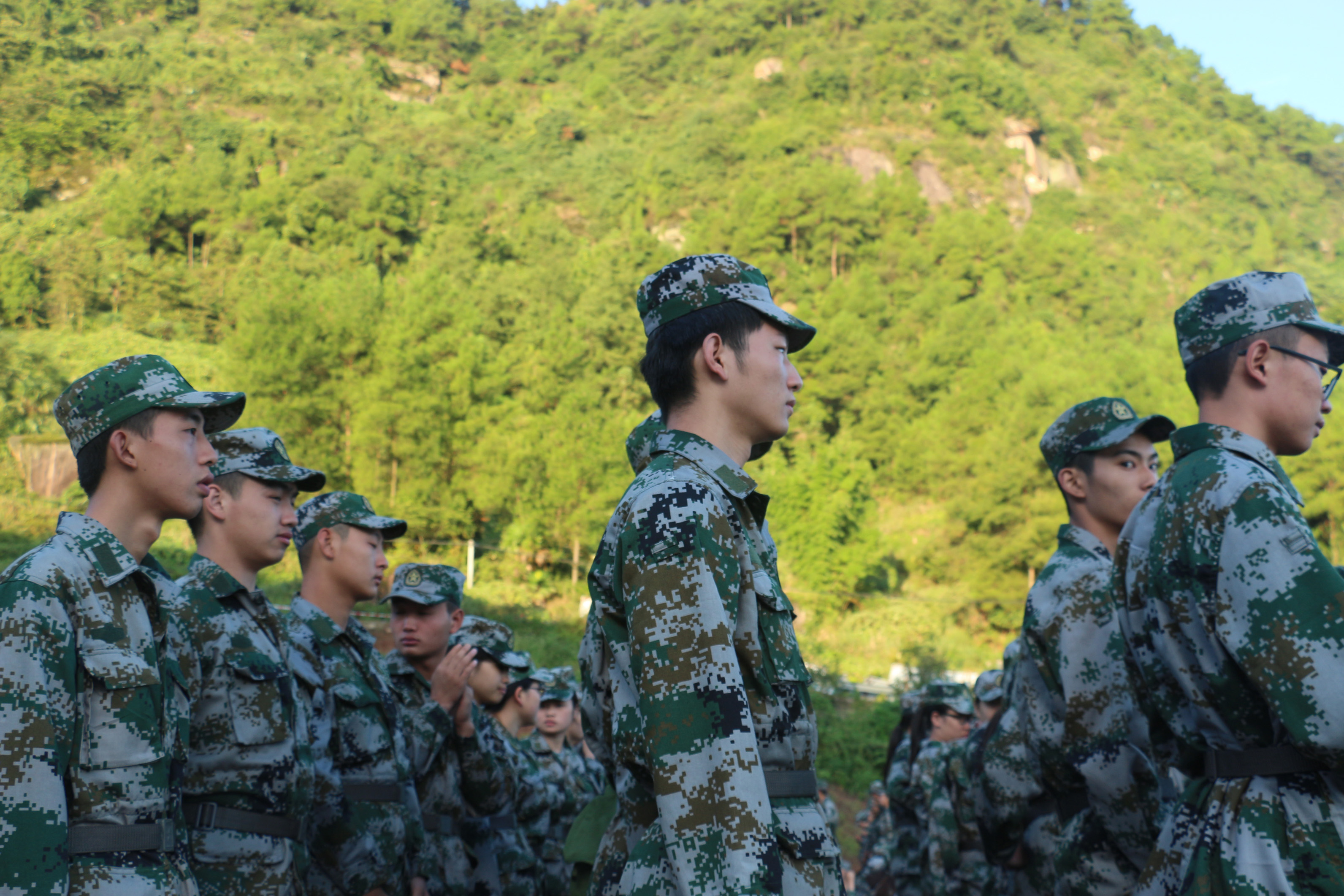 踏入大学军训的旅途,对我们这些十七八岁的大一新生无疑是一种磨炼和挑战,在这天气变化多端的古剑山上,我们昂首挺胸,一步步迈进军训。整齐的队伍,坚定的步伐,嘹亮的歌声,这些都为我们的军训生活填上新的色彩。大学的军训比高中时的军训更加严格,训练虽辛苦,汗水湿透我们的迷彩服,但湿不透我们坚定的心。
