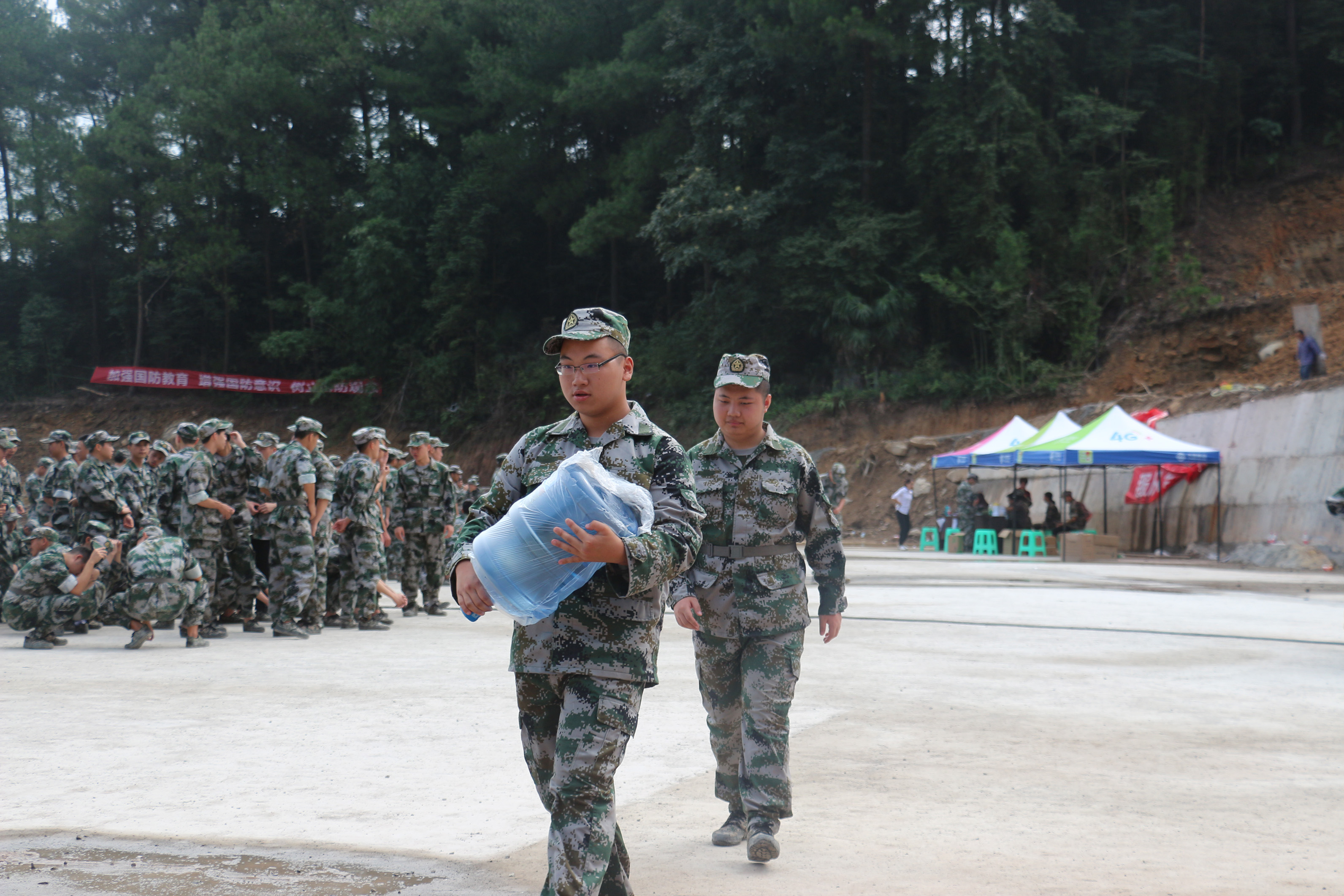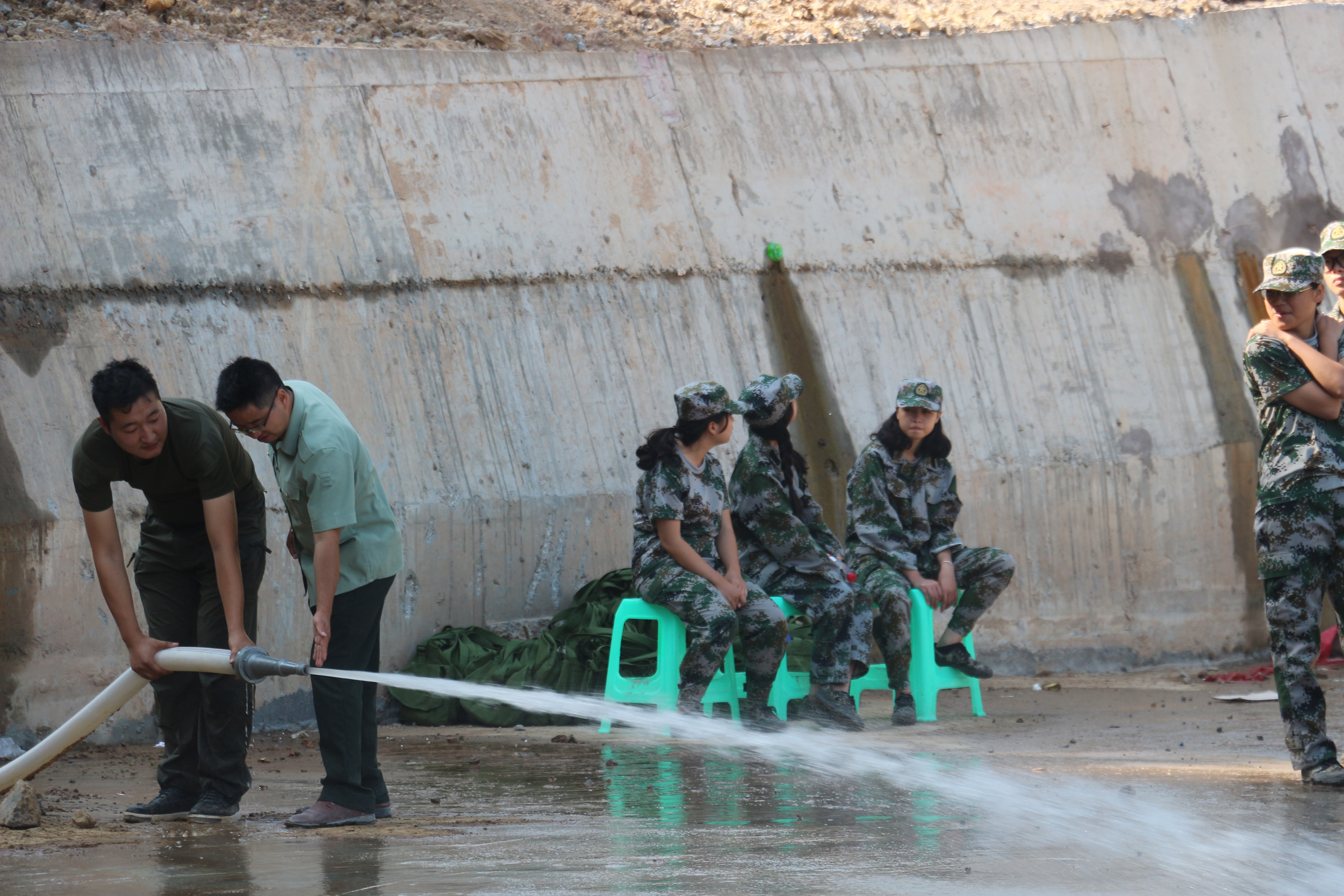 训练时喝的水,是同学们从远处抬来的;看到的飘扬红旗,是同学和老师辛辛苦苦整出来的;消防基地食堂里的井然有序,是督导员们用心维护的成果;古剑山基地场地洒水去灰,老师一遍一遍与基地协调进行喷水工作。