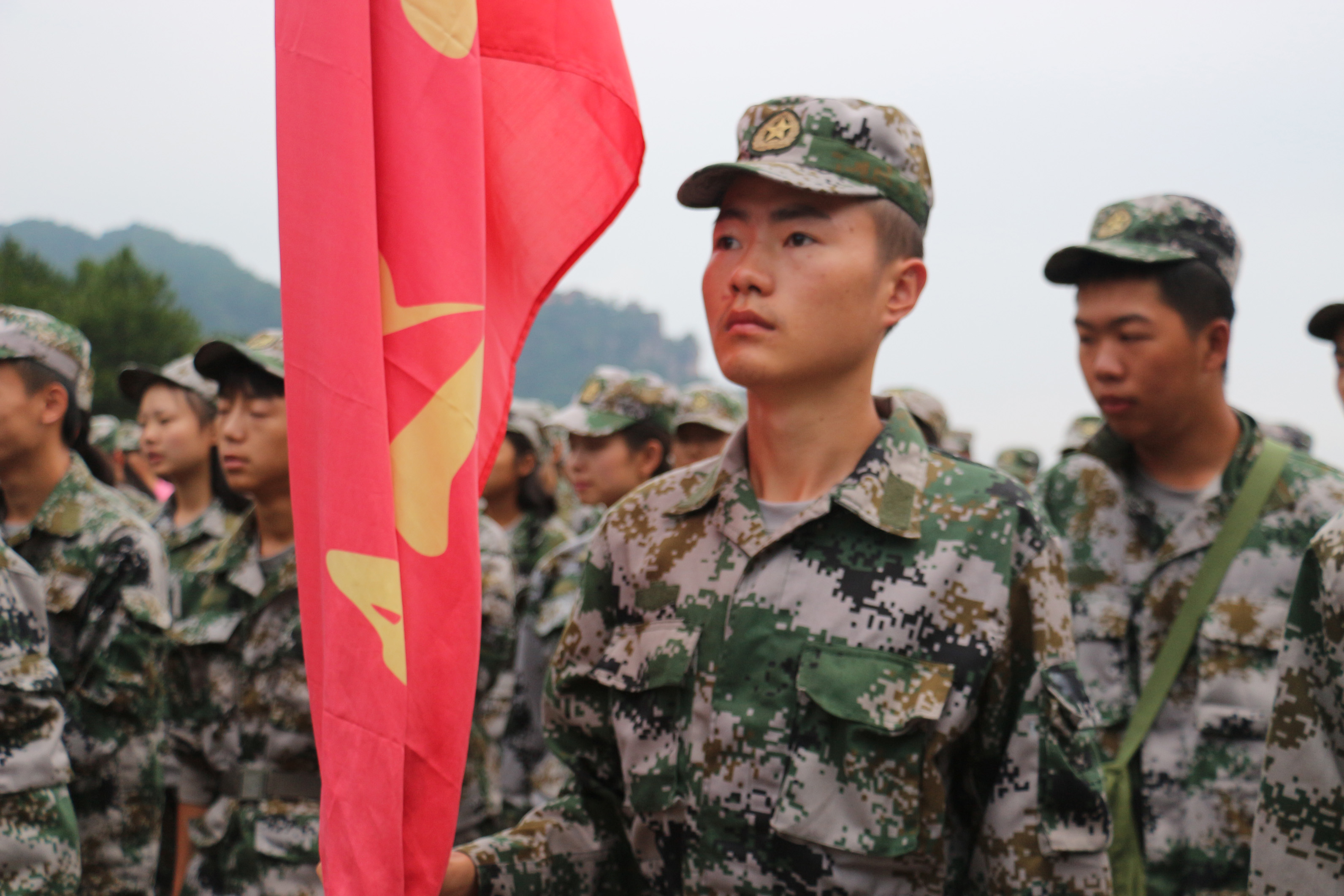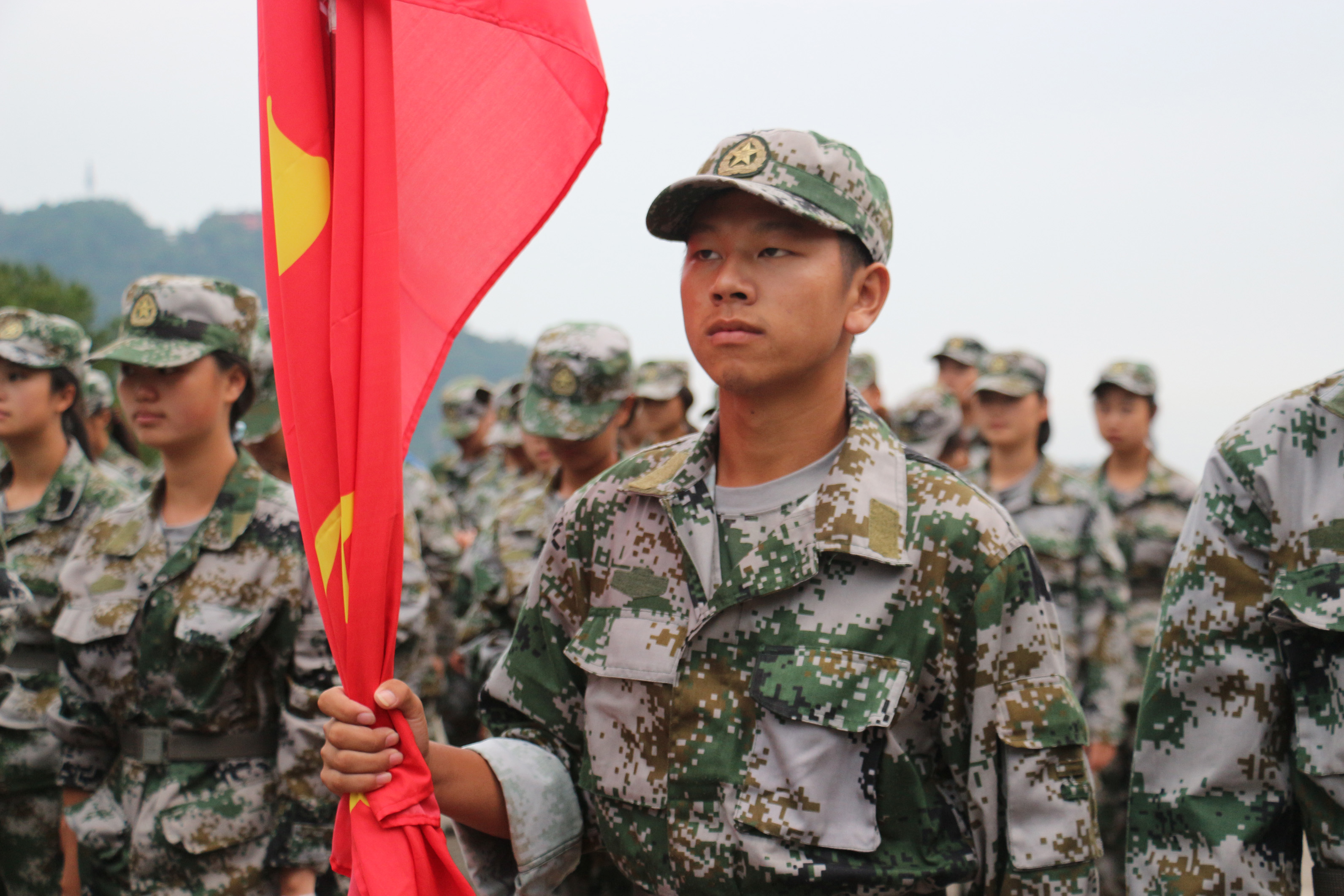 当旗手是我军训期间最值得开心的事情,虽然平时可能比同学们辛苦一点,但是为了连队的荣誉值得一战,我会呈现最完美的自己给同学们看。