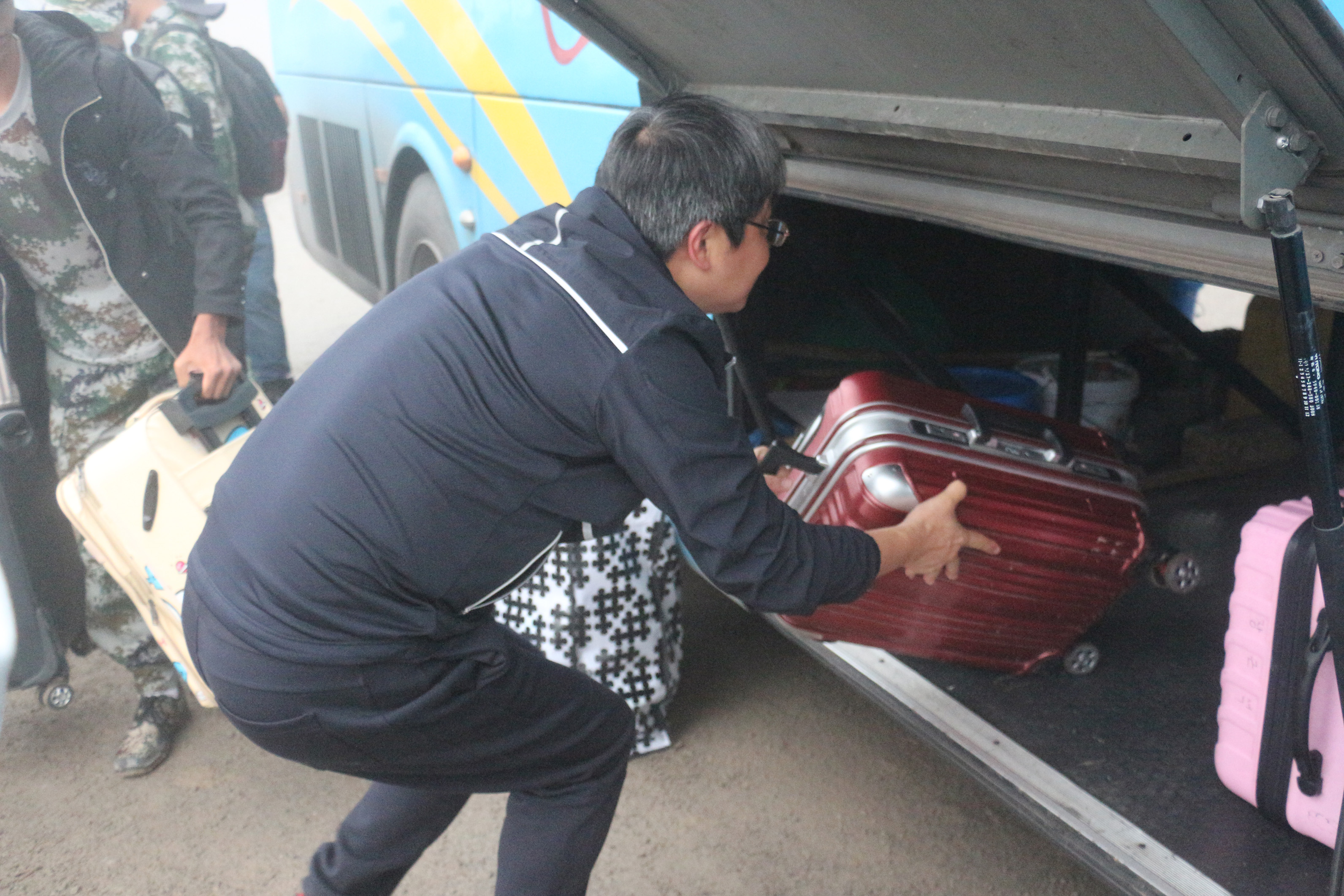 在山上蹲守了二十天,同学们抑制不住回校的激动,但是在乘车的过程中,都能做到听招呼,守纪律,有序上车,文明坐车,将军训期间养成的良好习惯发扬光大。男同学也主动帮助女同学提行李,有责任,有担当。