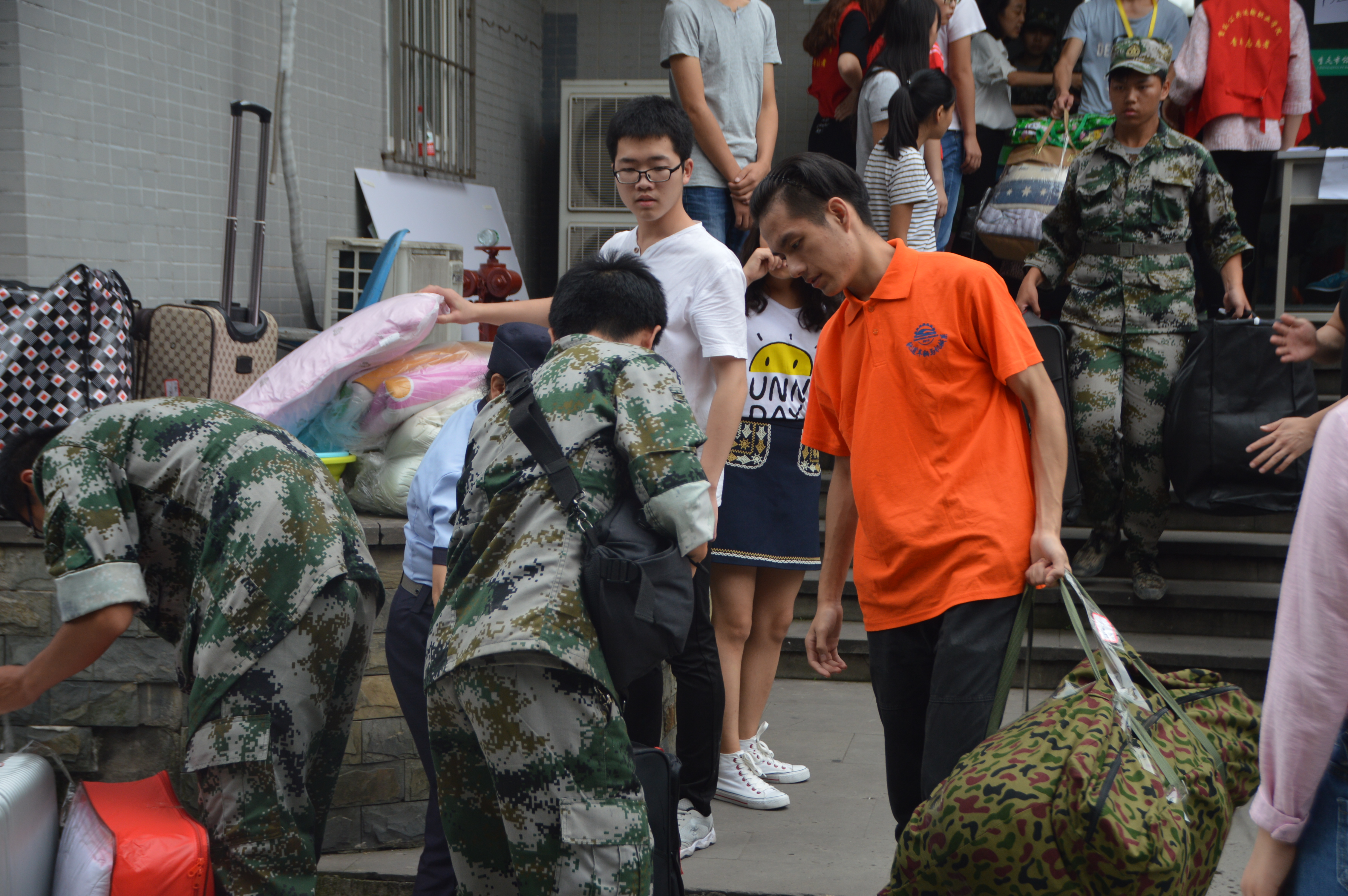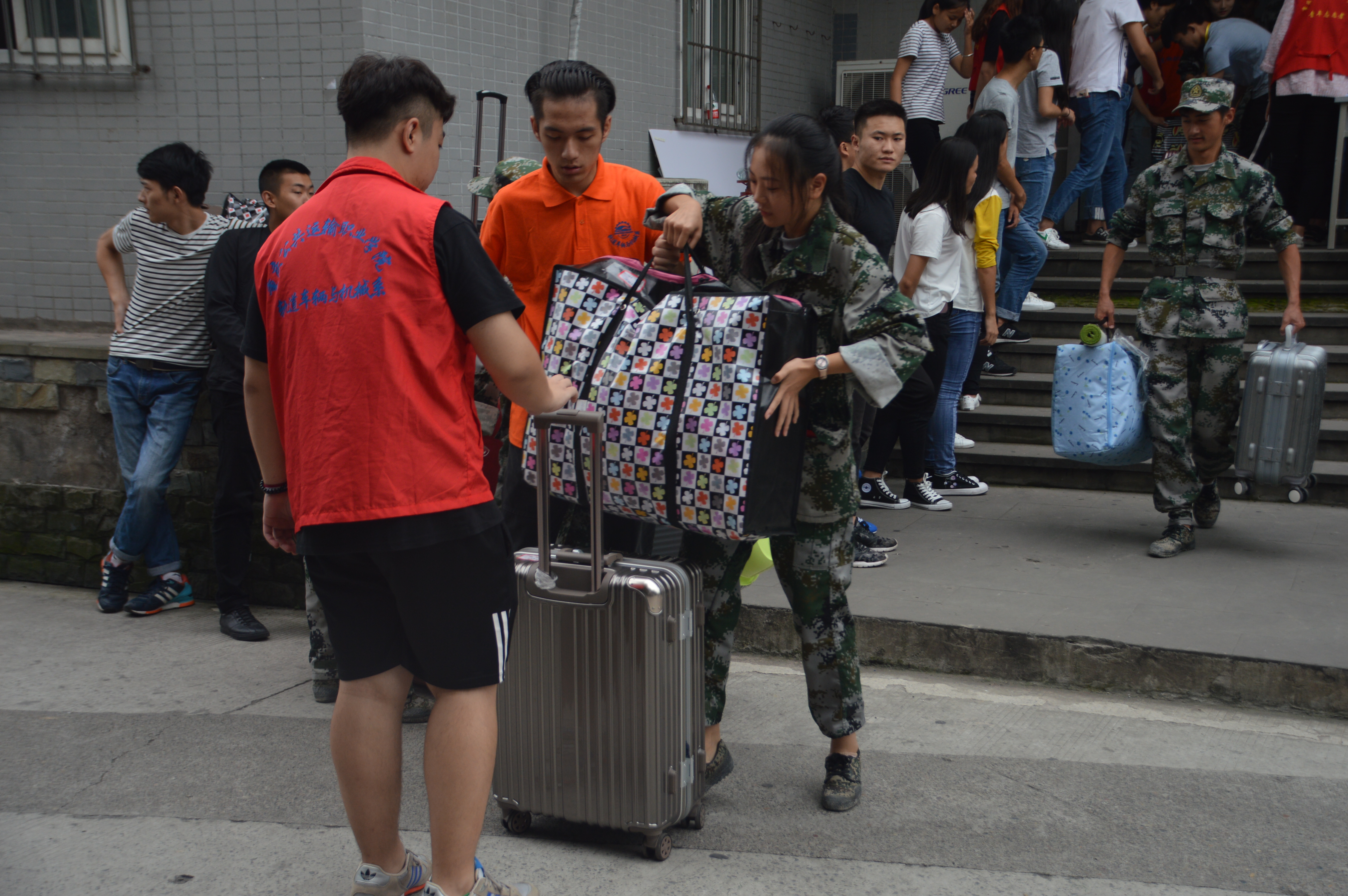 长达一个多小时的车程结束了,同学们安全到达学校后,老师们、学长学姐们协助领取行李、入住寝室, 满满的人文关怀和温度。