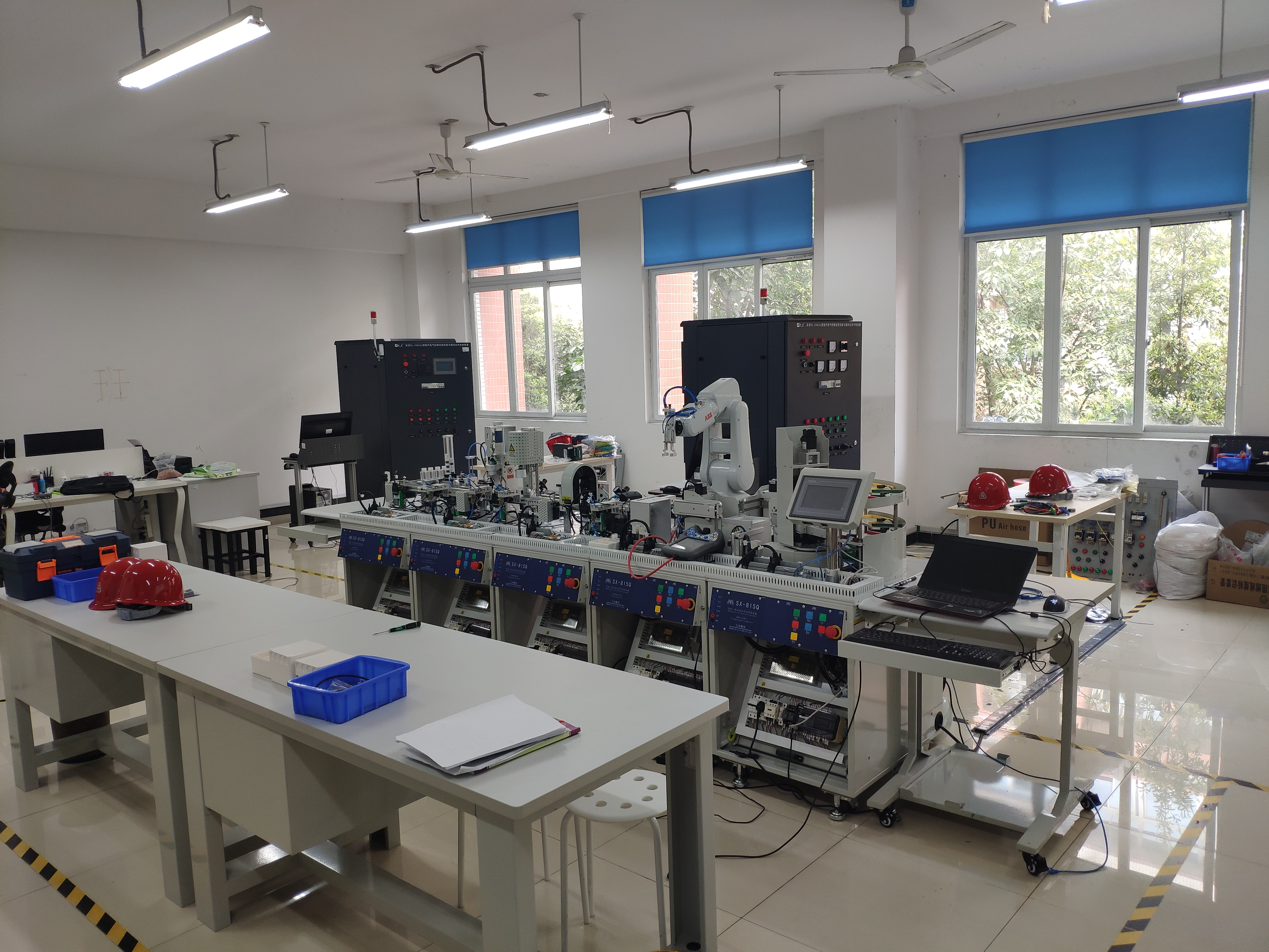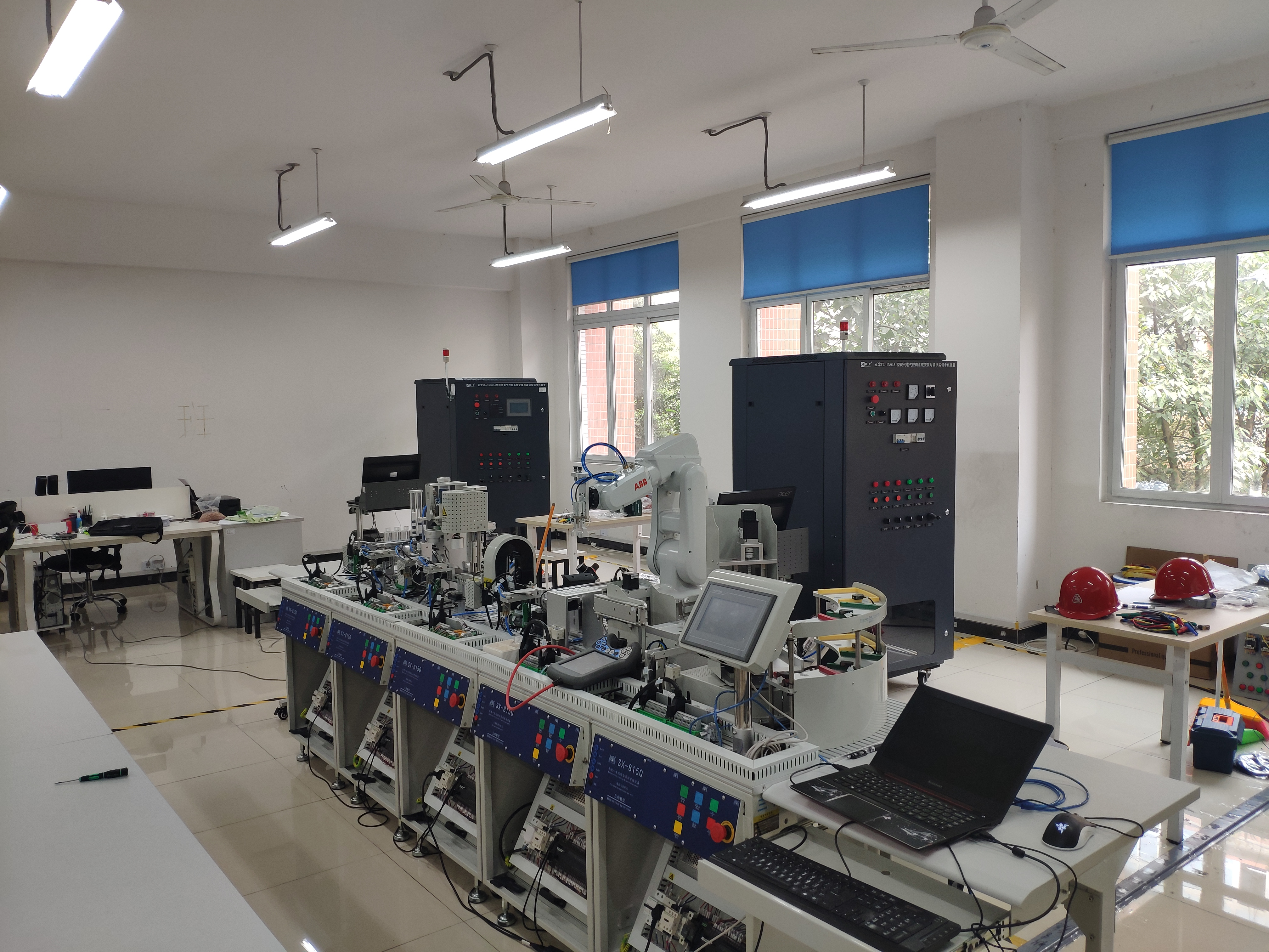 工业控制实训室为D207,占地约105㎡,工业控制实训室可通过现代电气控制柜设备、自动化生产线设备、机电一体化设备开展各种机电电气控制项目。