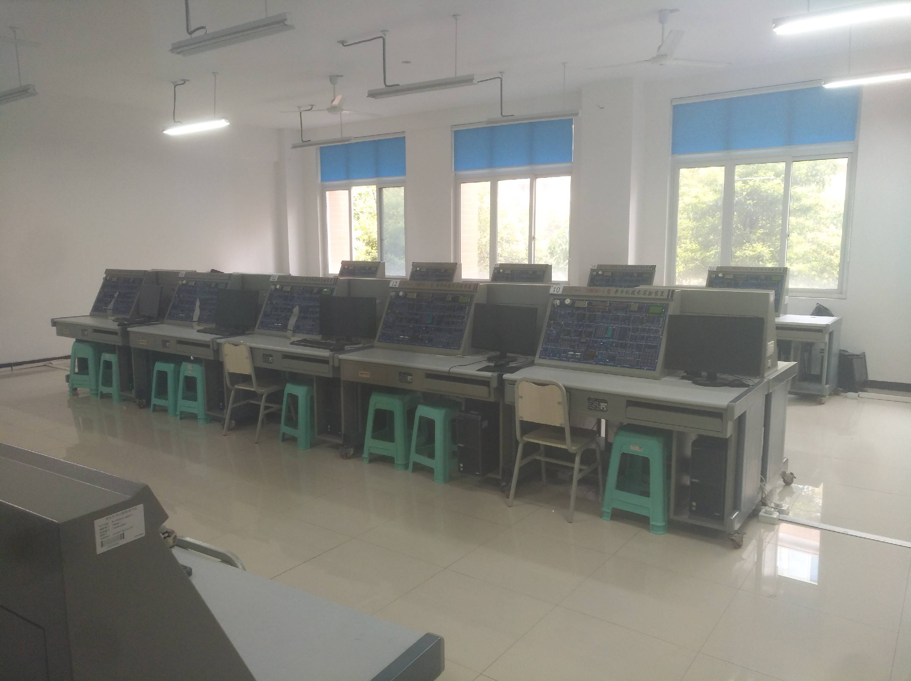 下设电子实训室、电工实训室、电力拖动实训室、工业控制实训室、PLC实训室、单片机实训室、钳工实训室、机械制图实训室、机械陈列室等10余个实训室。