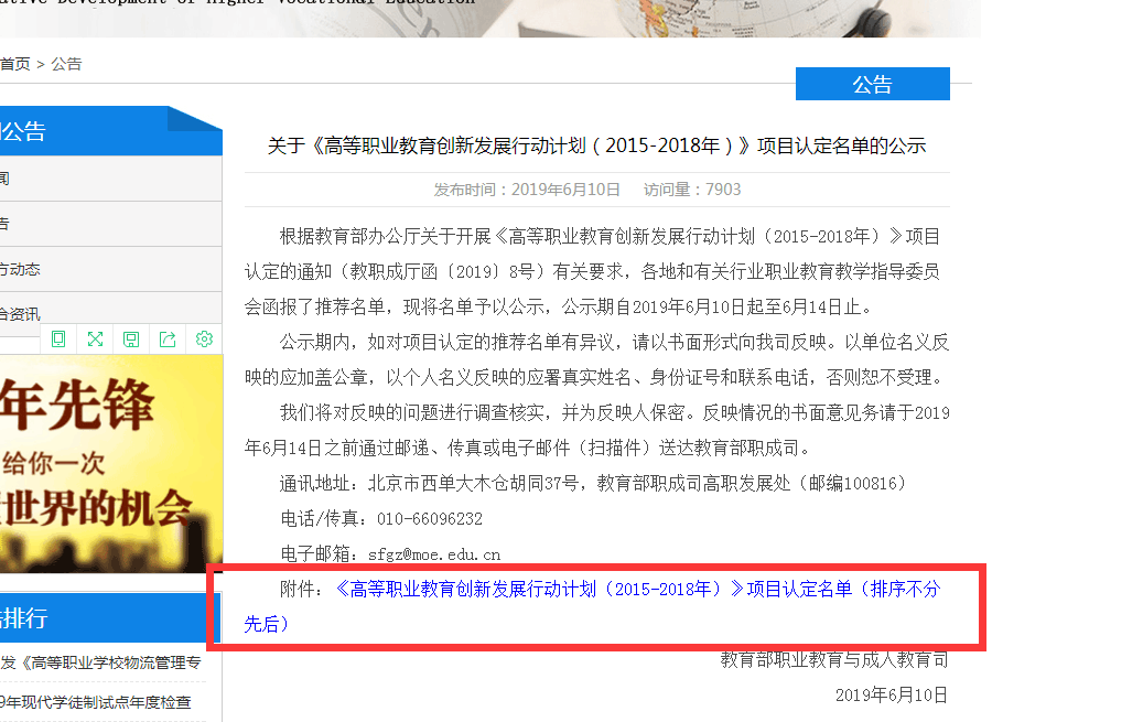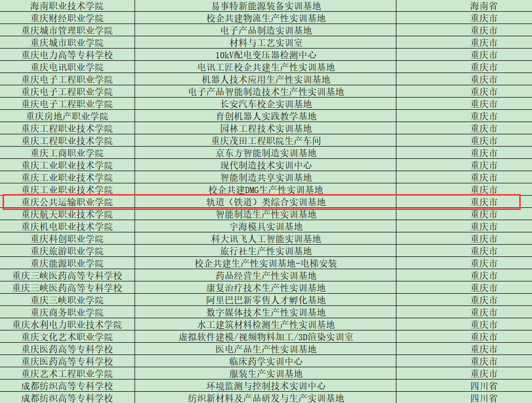 2019年6月10日,教育部职业教育与成人教育司下发专门通知,公布《高等职业教育创新发展行动计划(2015-2018年)》项目认定名单,学院轨道(铁道)类综合实训基地成功入该项目,被教育部认定为国家级生产性实训基地。
