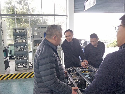 2019年3月15日,重庆轨道交通(集团)有限公司领导来我院城轨高铁技术共享实训基地参观交流。在基地教师的专业讲解与介绍下,轨道交通集团领导亲自体验了基地部分实训设备,对基地的实训室建设以及实训设施设备给予了高度的肯定,同时也提出了一些有关实训室建设和管理的宝贵意见。