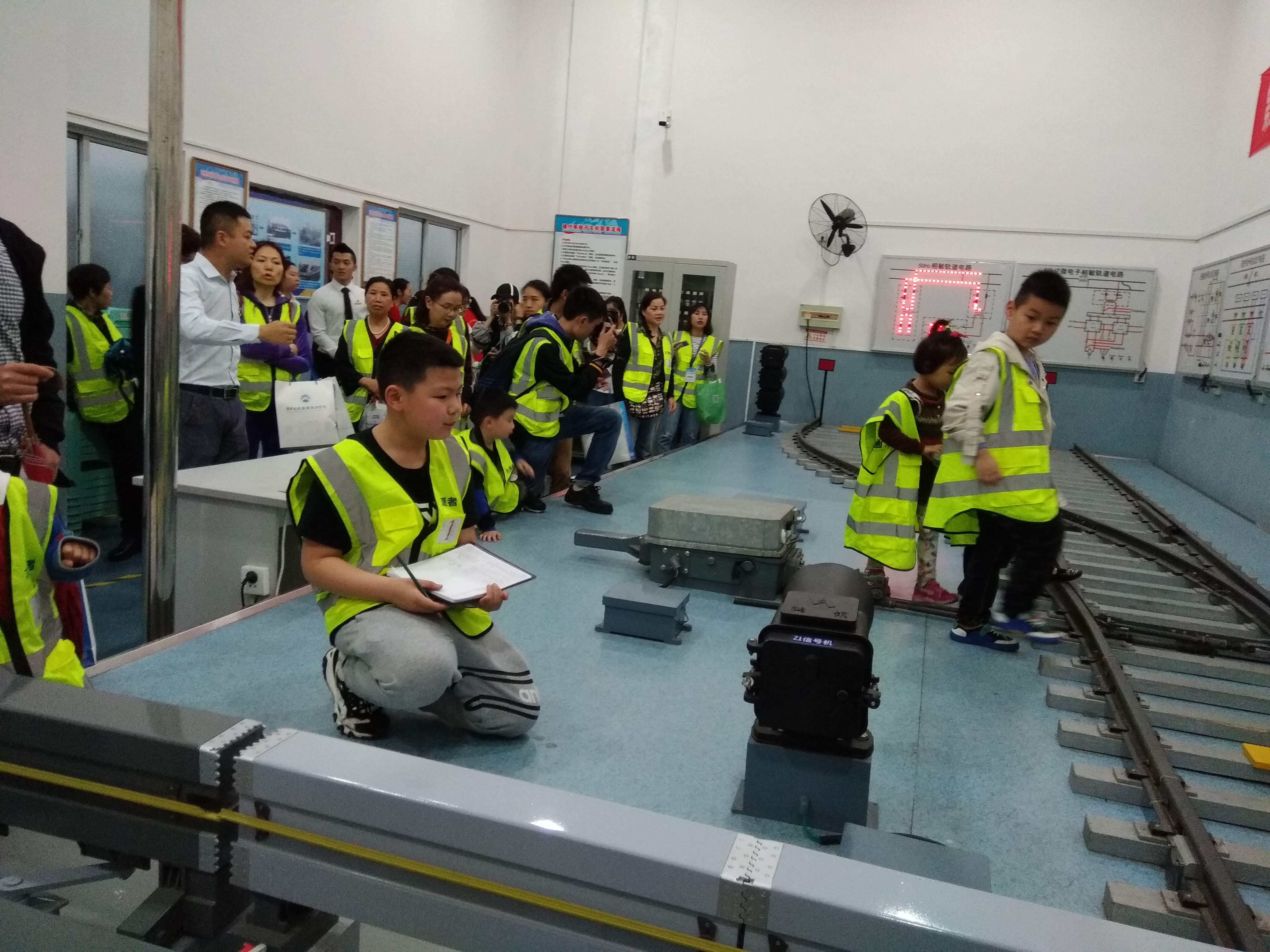 在观看完学校形象宣传片后,40多位市民被分成2个小组,分别从城市轨道交通实训中心、铁路综合实训中心开始参观学院的城轨高铁技术共享实训基地。在基地教师的讲解介绍下,市民们带着极大的热情参观了基地的城市轨道交通运营控制模拟、城市轨道交通车辆检修、轨道交通车辆电气控制、轨道交通车辆制动等实训室,了解并学习城市轨道交通行车组织与调度指挥、正常及非正常情况下的接车、发车过程、列车驾驶基本技术等知识。
