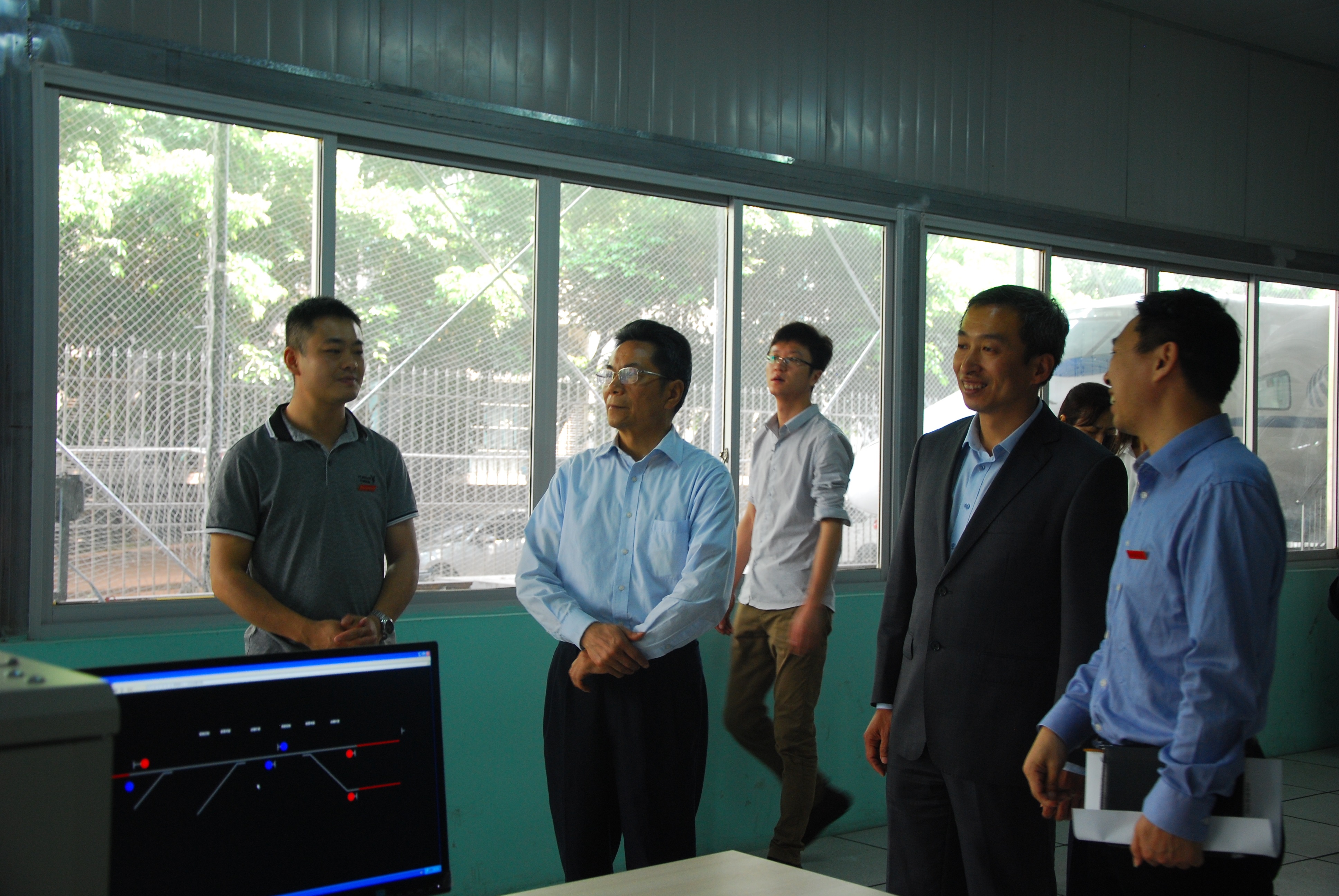 在结束高职院校对口帮扶项目签约仪式之后,在学院赵月望院长、彭超书记等领导的陪同下,山东职业学院领导到学院实训基地进行参观考察。在参观过程中,郭鹏副校长在对学院的实训条件给予了高度评价的同时,对实训室建设和管理等方面也提出了一些实际可行的建设性意见。