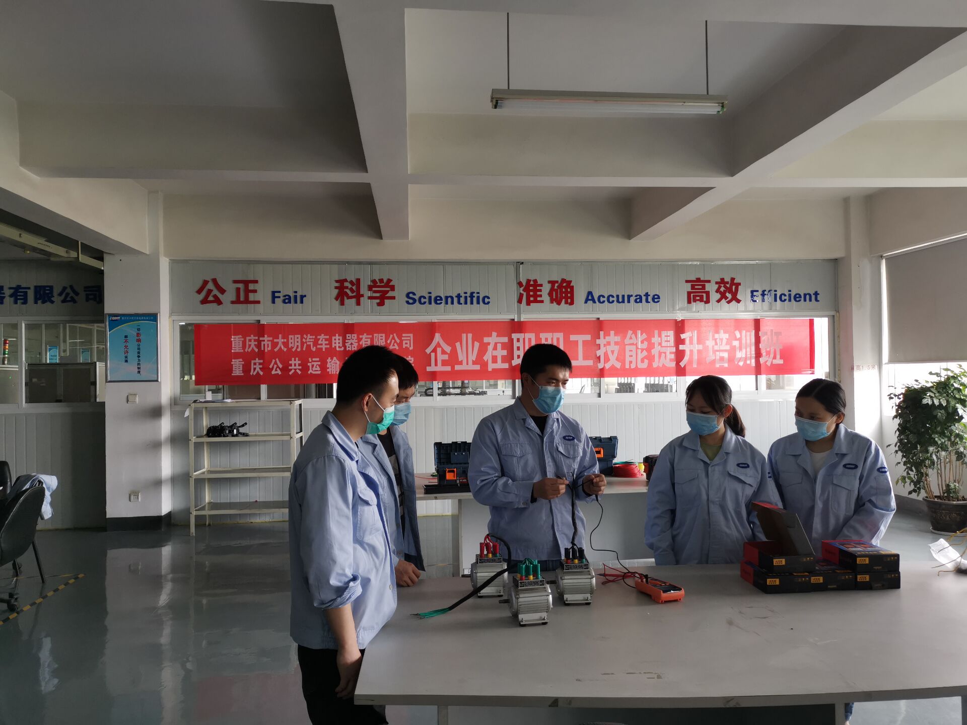 为充分发挥实训基地的社会共享功能,推进校企合作,进一步加深与企业行业之间的交流,疫情期间,实训基地积极组织开展校外职业资格培训,与重庆市大明汽车电器有限公司顺利合作开展“企业在职职工技能提升培训班”。