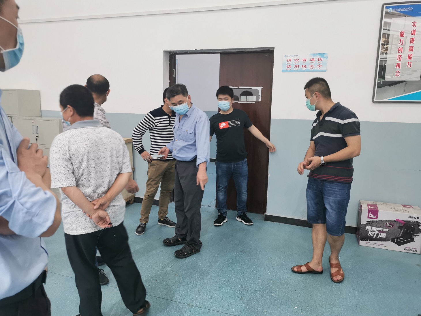 在巡查同时,基地王德春副主任就疫情期间的实训教学安全作出强调,提示基地教师在实训教学中务必做好疫情防控措施;同时,随着高温天气的来临,各实训中心负责人应做好上课师生的安全提示和服务工作,避免出现高温中暑等问题,保障师生安全。