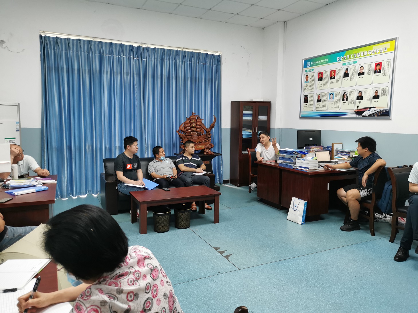 6月22日中午13:00,实训基地在铁道实训中心办公室召开部门安全稳定工作会议,基地全体教师参加此次会议。