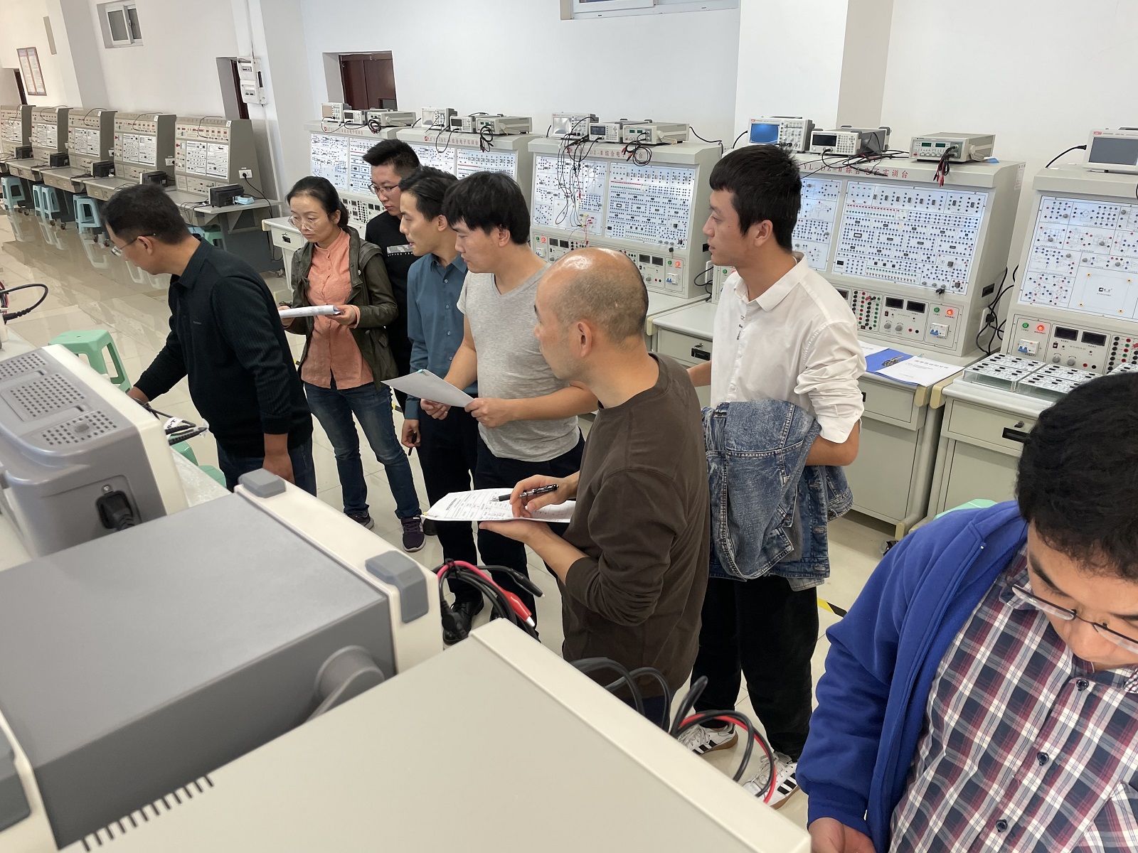 2020年11月17日城轨高铁技术共享实训基地组织了对电子实验室20套亚龙YL-DZ-Ⅱ综合电子实验台的验收工作。