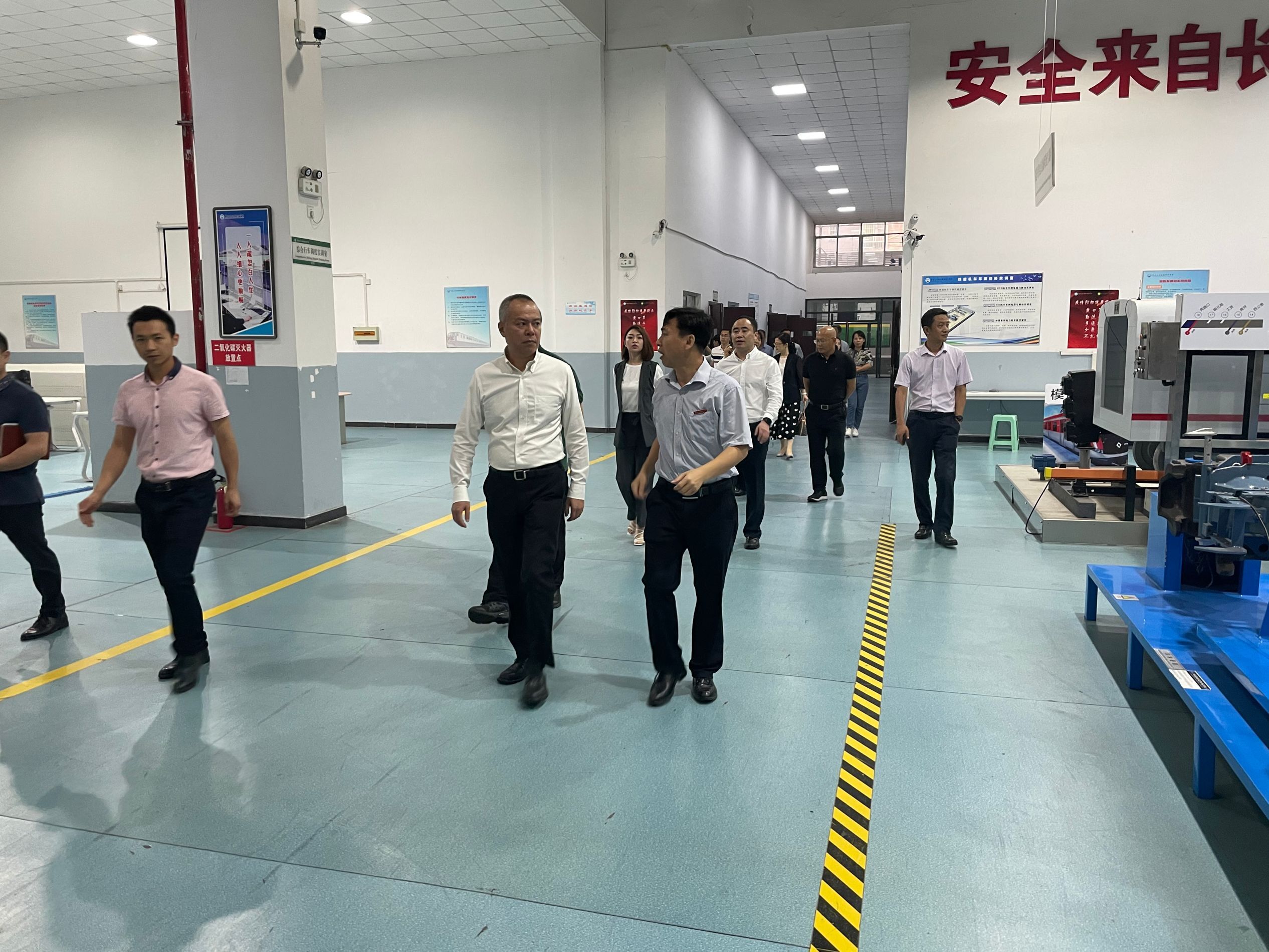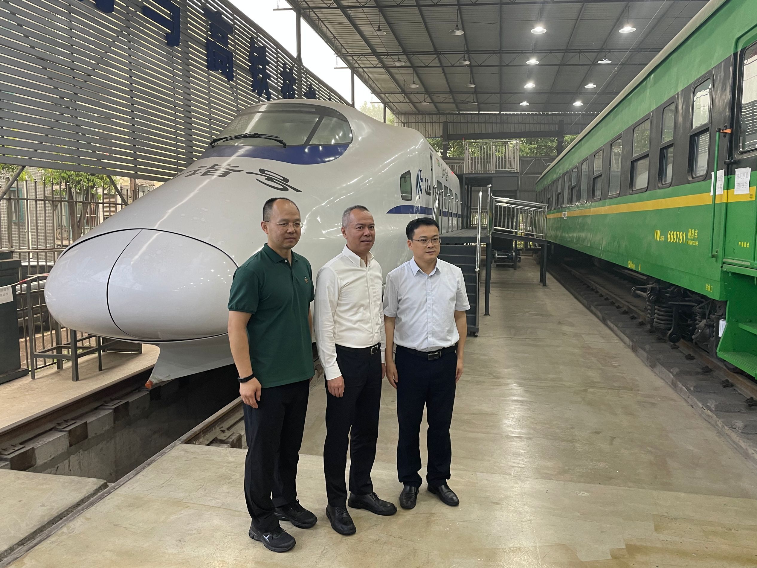 参观期间,双方领导围绕和谐号动车组、韶山3型电力机车、P70棚车等实训教学设备就人才培养模式、企业需求等展开深入的交流,同时,在基地专业老师的讲解下,到访领导现场体验轨(铁)道模拟驾驶。