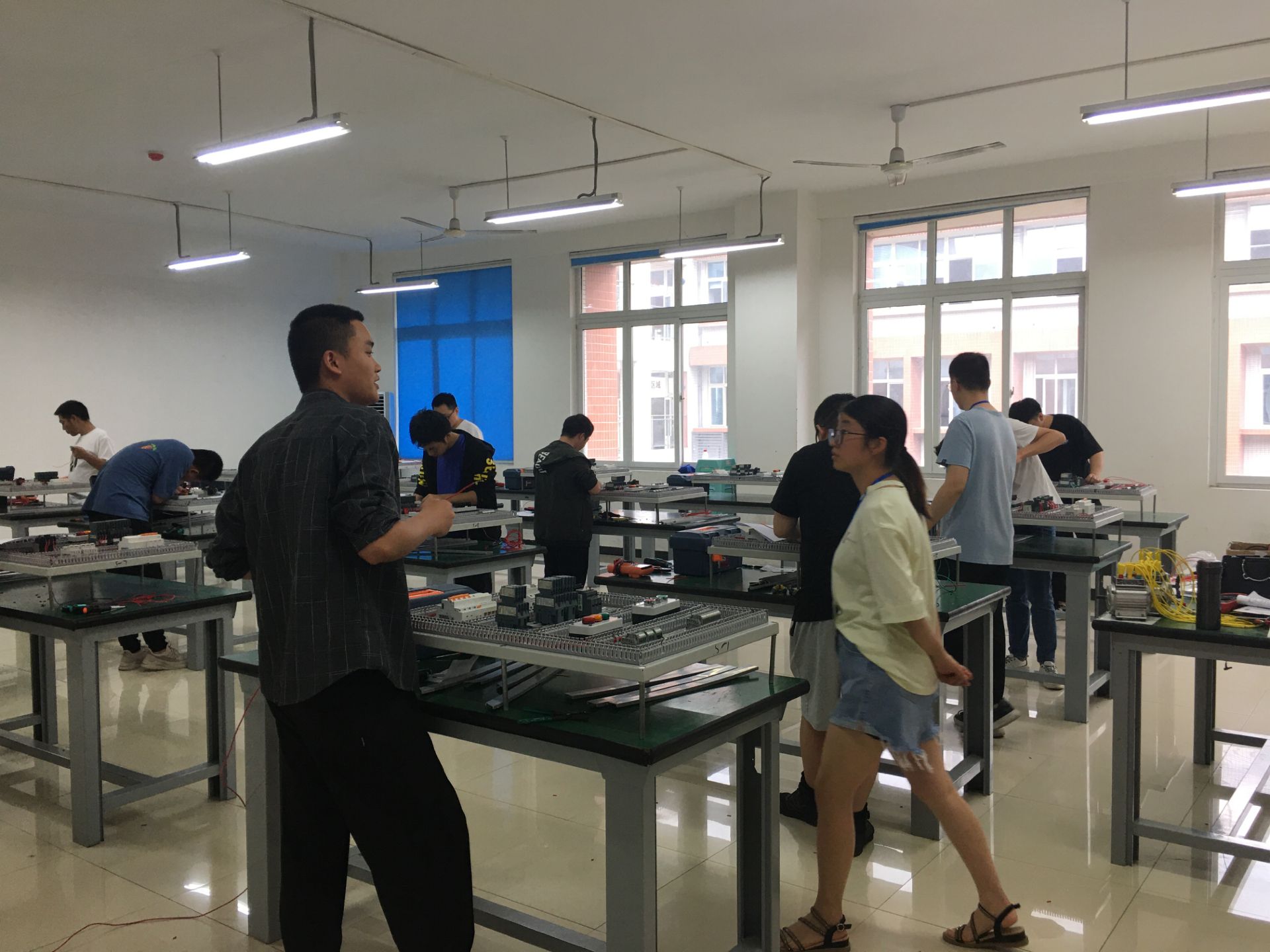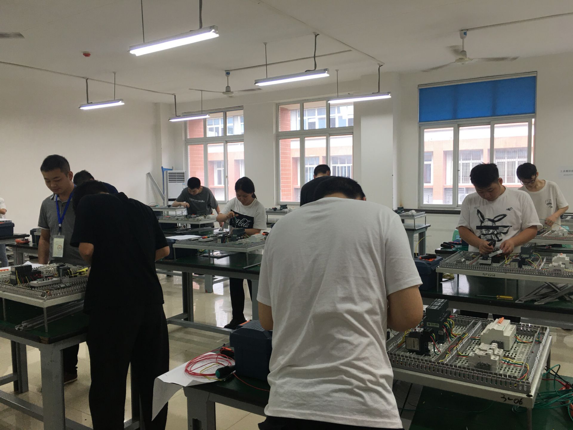 在机电实训中心进行电工中级(四级)技能鉴定,本次鉴定分为理论考试和实操考核两部分进行。