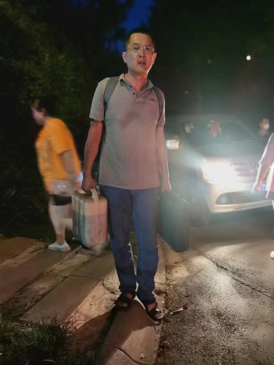 得到支持后,蒋勇和夫人当即从大学城开车赶回位于江津双福的学校主校区,带上机油和相关工具,于当晚8点由其夫人开车送他到距隔离带大约两三百米的指定集合点。