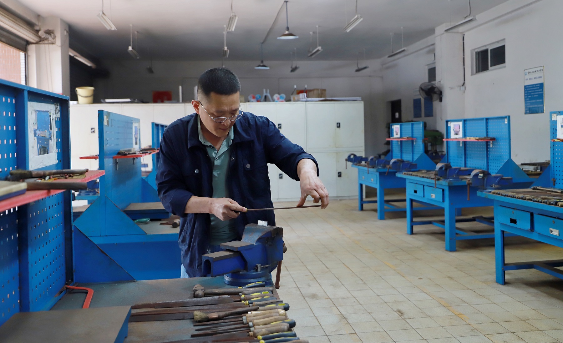考虑到特殊时期,可能很难在现场买到供应短缺的燃料,蒋勇想起学校钳工实训室还储备着适量机油,可以配制油锯所需的混合燃料。更重要的是,还有维修油锯所需的小号的圆锉刀,于是他打电话联系实训中心负责人,说了自己的想法。