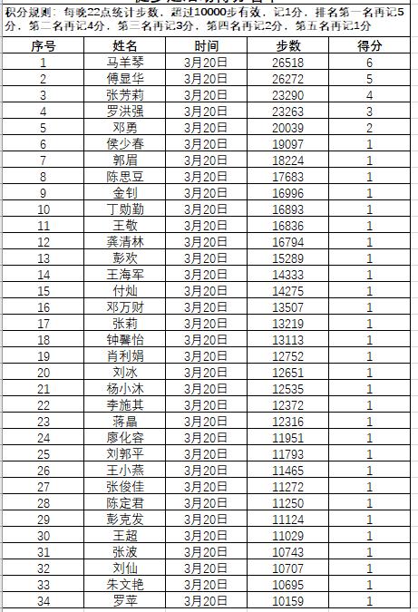 分工会通过微信平台广泛宣传,鼓励老师们积极参与。活动规则简单明了,参与者在活动期间每天通过微信运动记录步数,分工会在微信群里公布每天的步数积分排行榜,形成互动与激励。同时,分工会还设置丰富的奖励机制,奖励每月步数积分在前五名的老师,以及坚持每天步数上10000步的老师,进一步激发老师们的参与热情。