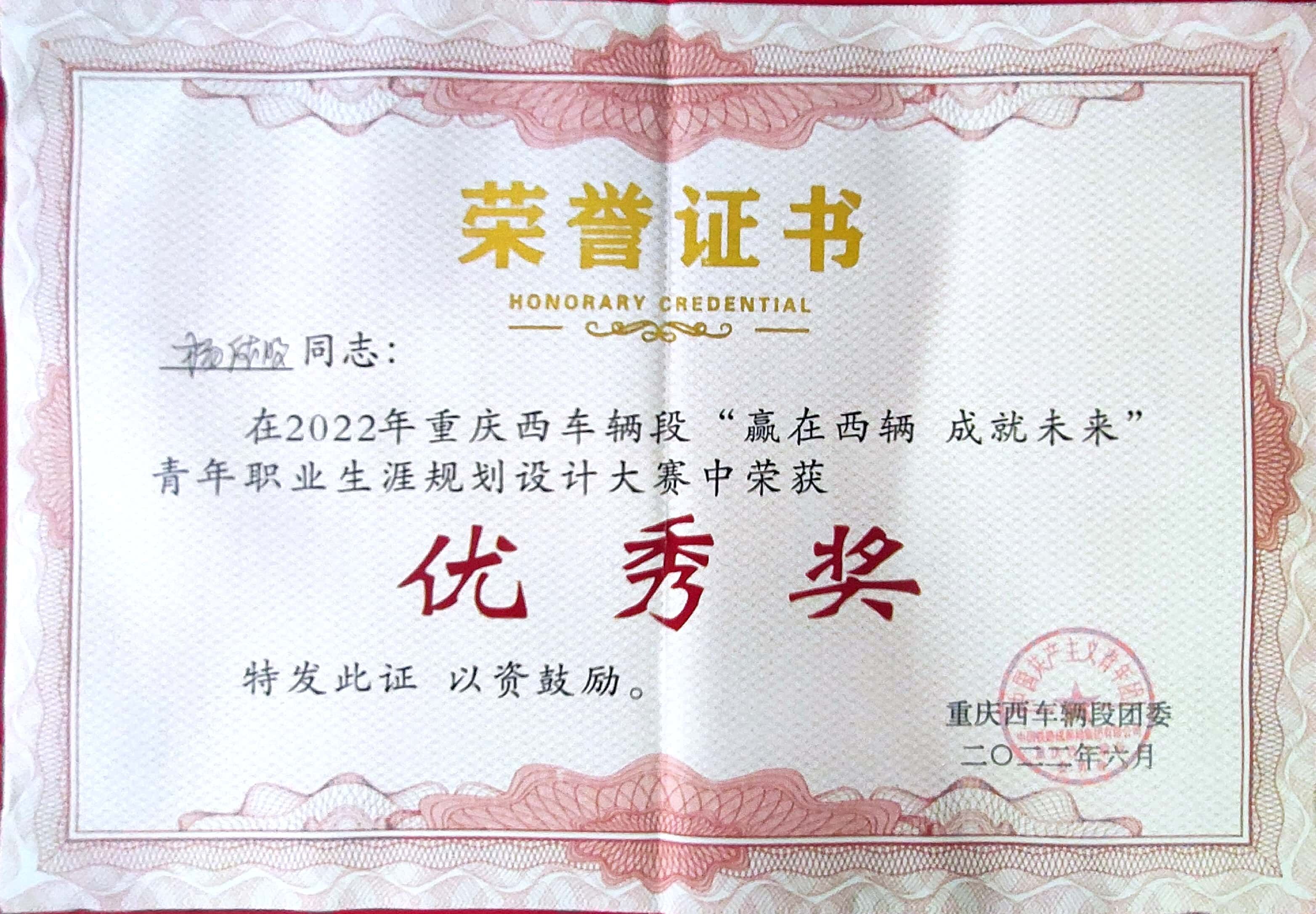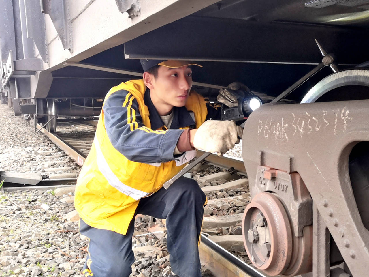 起而行之,在奋斗中砥砺初心使命,做好铁路货运的守护者,怀着感恩,在学校的培养和他不断的努力下,在2021年7月正式就职于中国铁路成都局重庆西车辆段,担任货车检车员职务,铁路货车检车员作为铁路运输的“车辆大夫”,守好这一列列“钢铁长龙”的运输安全,是我们的本职工作,更是一代又一代车辆人的使命担当。