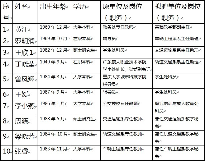 系主任助理等岗位内部竞聘结果公示