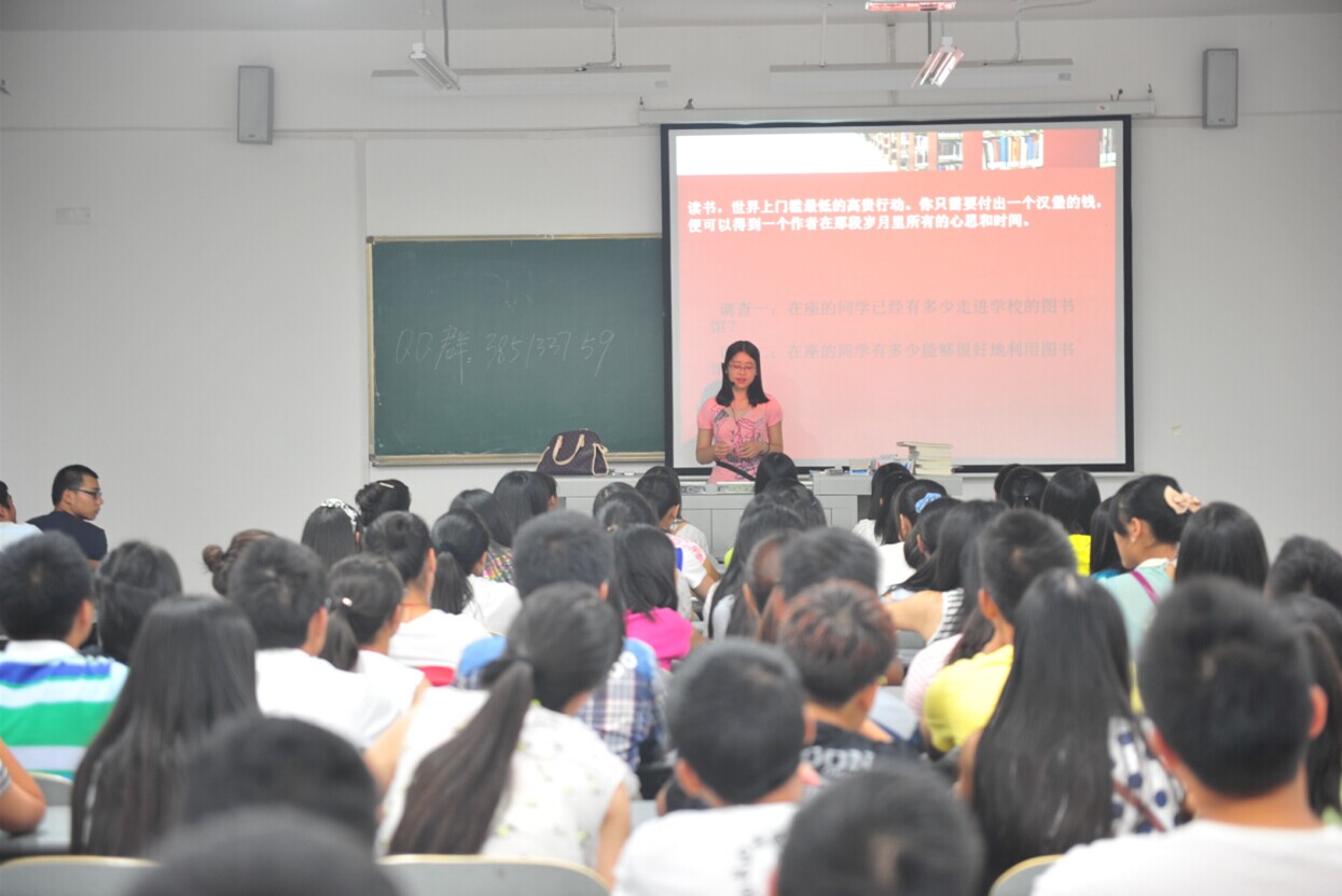 2014年9月22日晚,图书馆在B106举办了大一新生入馆教育。由郭钦老师主讲,全院100多名同学参加了此次活动。