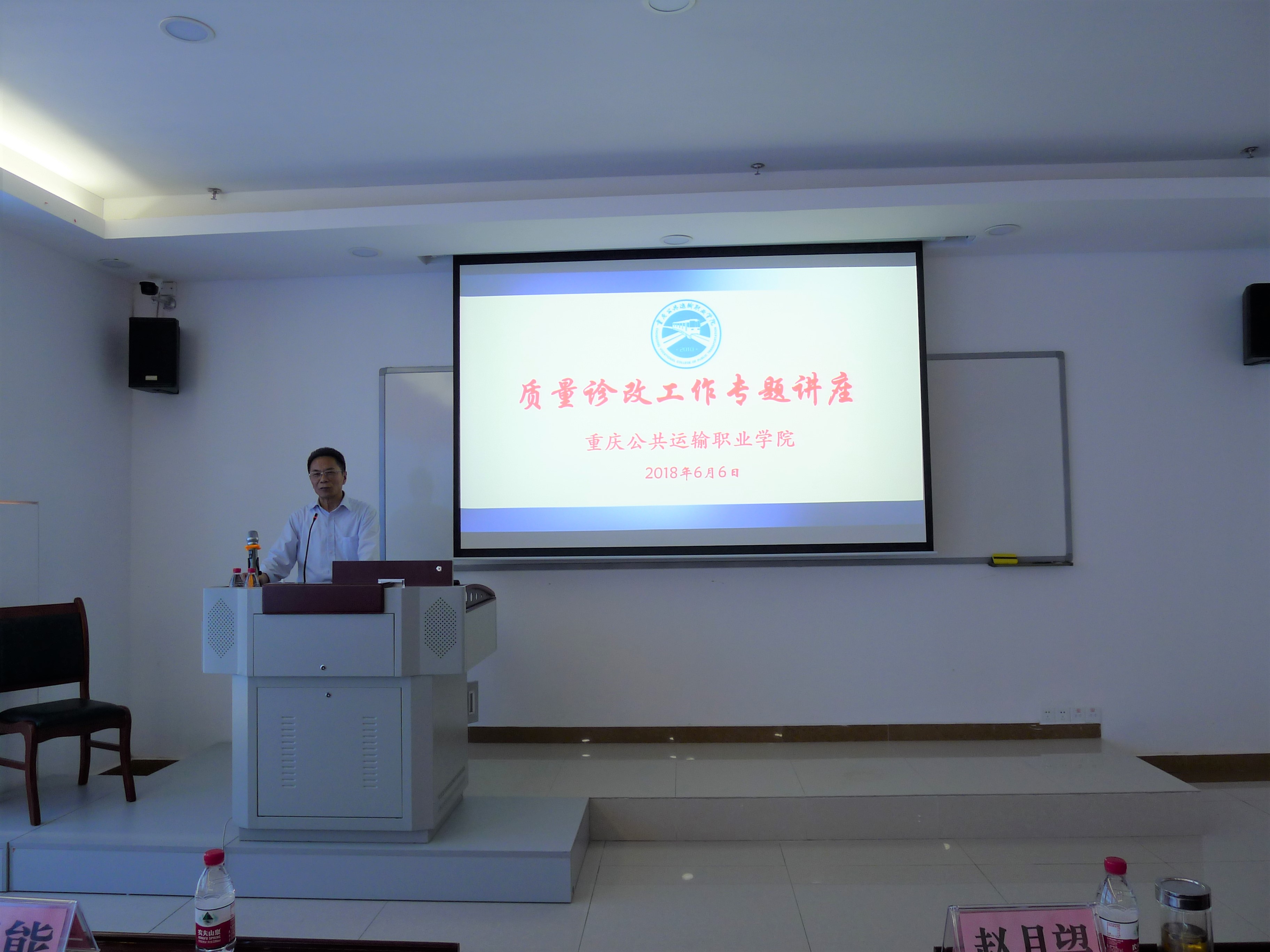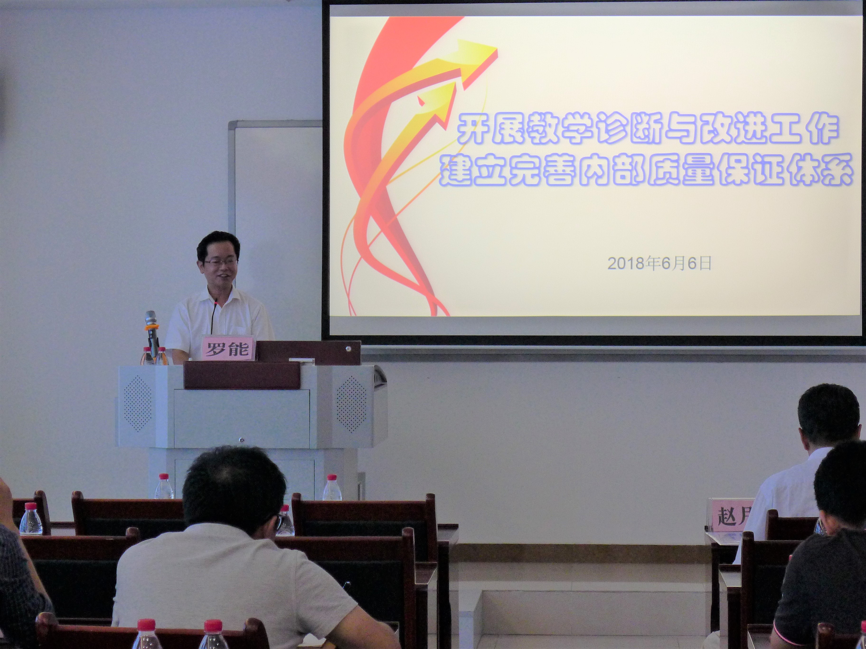 为促进学院内涵建设,深化教育教学改革,推动学院内部质量保证体系建设与运行方案的实施,建立常态化的内部质量保证制度体系,6月6日下午,我院特邀请重庆市高职诊改专委会副秘书长、重庆航天职业技术学院副院长罗能教授来校作题为《开展教学诊断与改进工作,建立完善内部质量保证体系》专题讲座。学院领导,各职能部门负责人,各教学部门主任、书记,各专业负责人(带头人)、教学科研团队负责人,教务处、学生处、人力资源处科级干部等到场参加。讲座由院长赵月望主持。