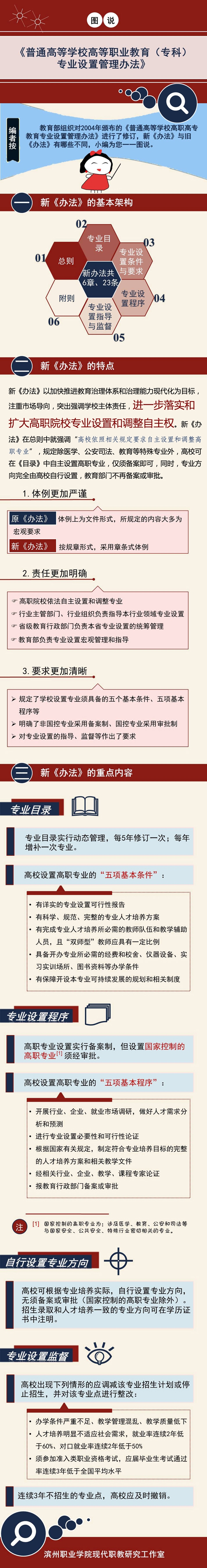 诊改专题网 教育评价改革 政策文件 通知公告 工作动态 工作简报 工作动态首页 > 诊改专题网 > 工作动态 > 【图解】普通高等学校高等职业教育(专科)专业设置管理办法 来源:工作动态发布时间:2015-11-19 16:17访问量: