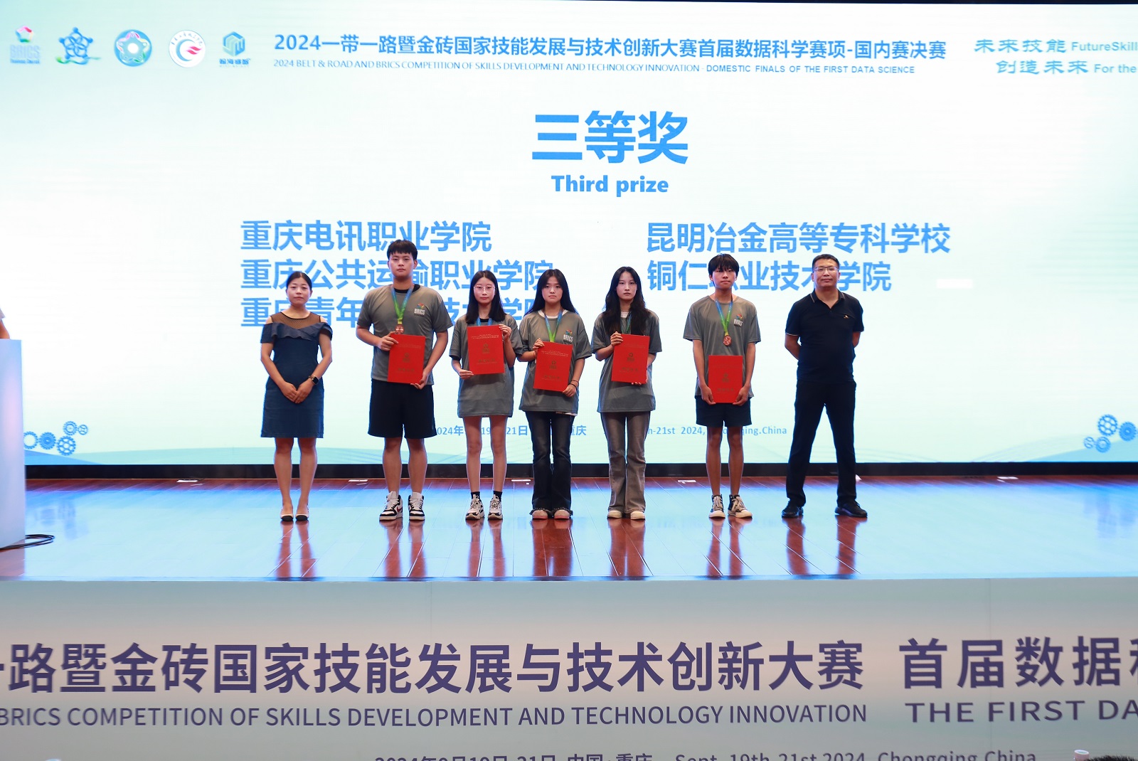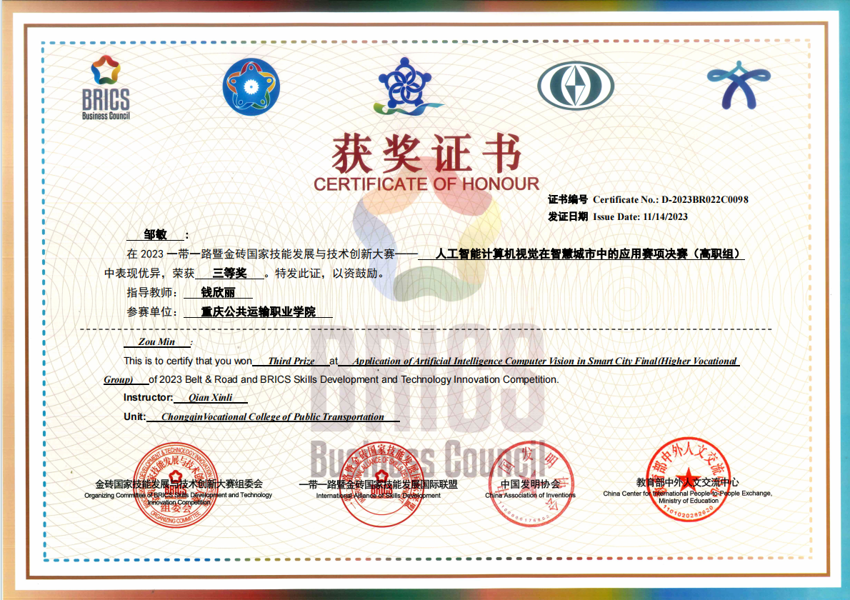 依托校企共建优势,学生在国家级、省部级技能竞赛中屡获佳绩。近五年累计获得重庆市职业院校学生职业技能竞赛、一带一路暨金砖国家技能发展与技术创新大赛、新华三杯全国大学生数字技术大赛等职业技能竞赛省部级以上奖项10余项。通过 “以赛促学、以赛促教” 模式,全面提升学生创新实践能力与团队协作水平。