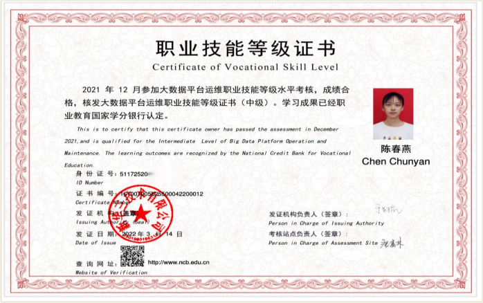 建立 “校企双主体” 就业服务机制,与华为新华三生态链企业、重庆轨道集团等 50 余家行业龙头签订人才输送协议,毕业生初次就业率连续三年超 98%,专业对口率达 85% 以上,专升本上线率100%,其中2020级朱玉琦同学专升本考入重庆理工大学。依托H3C认证体系,毕业生可获取大数据平台运维、华为5G工程师、腾讯云等行业权威证书,显著提升就业竞争力与职业发展起点。