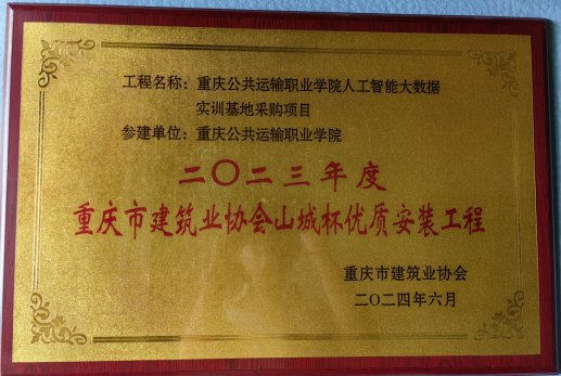 专业实训基地获重庆市全民数字素养与技能提升基地、重庆市计算机学会优秀实训室、重庆市建筑业协会山城杯优质安装工程奖以及1+X优秀考核站点等。