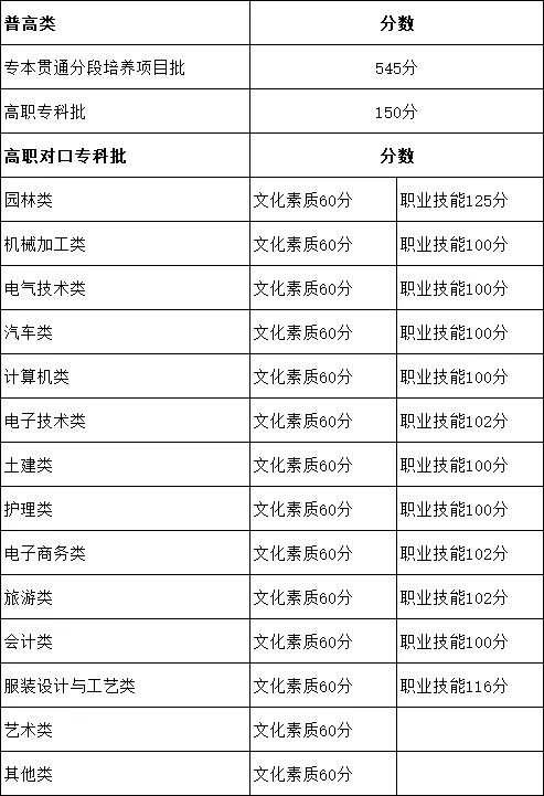 2021年我市高等职业教育分类考试招生部分录取最低控制分数线如下: