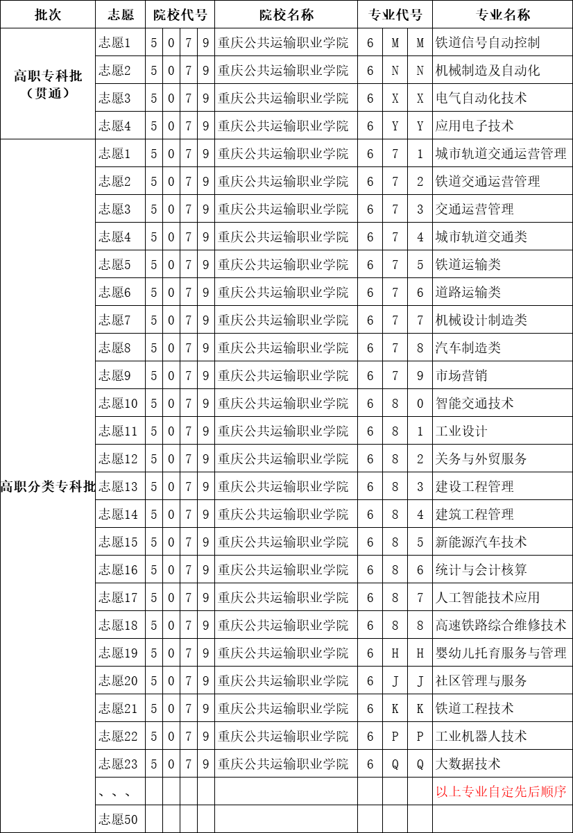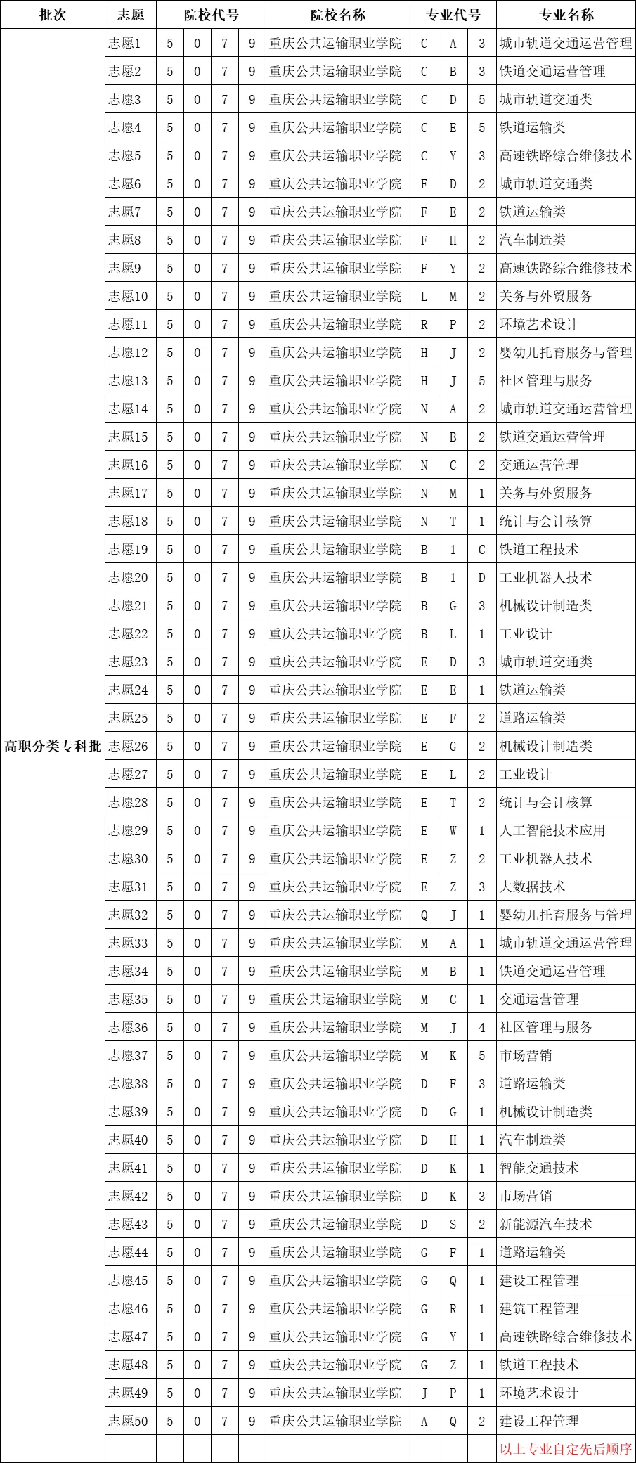 注:建议考生根据专业青睐程度自定先后顺序,并将电子游戏志愿填在本批次的最前面。中职生只能报考对应类别的专业,详见重庆市《2021高等职业教育分类考试计划及填报志愿指南》。