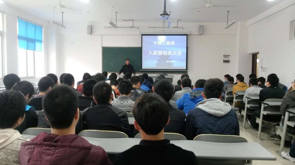 为帮助学生认清就业形势,尽快完成角色转变,适应企业的发展和需要,车辆工程系于2014年3月26日上午9:00,在B201教室召开2011级到公交入职学生的动员大会,该会由系主任庞远智主持,系主任助理张睿、学工办主任罗明润、辅导员徐浩及90多名学生参加了此会。