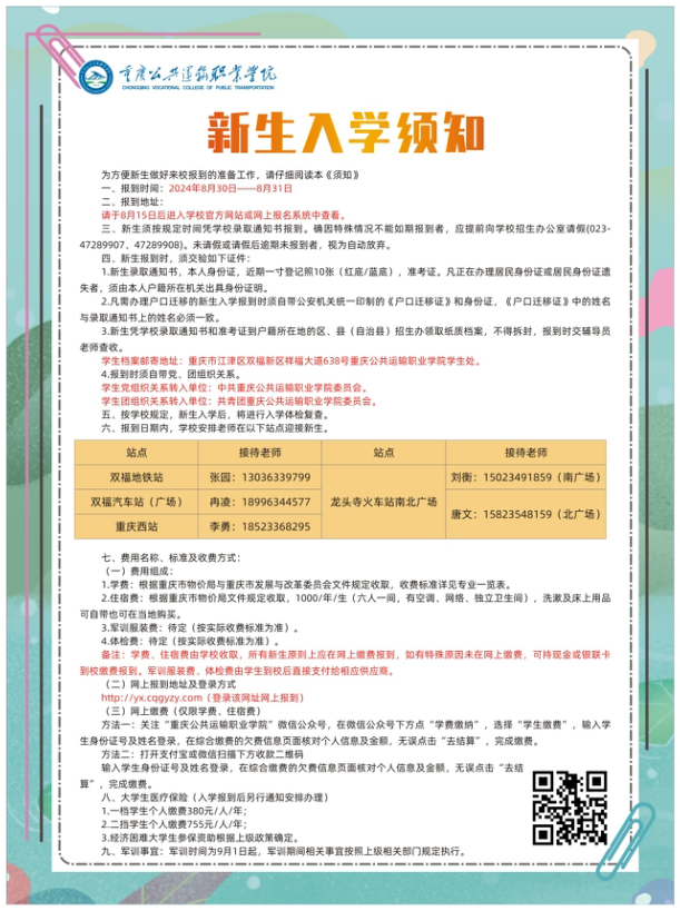 2024年新生入学须知